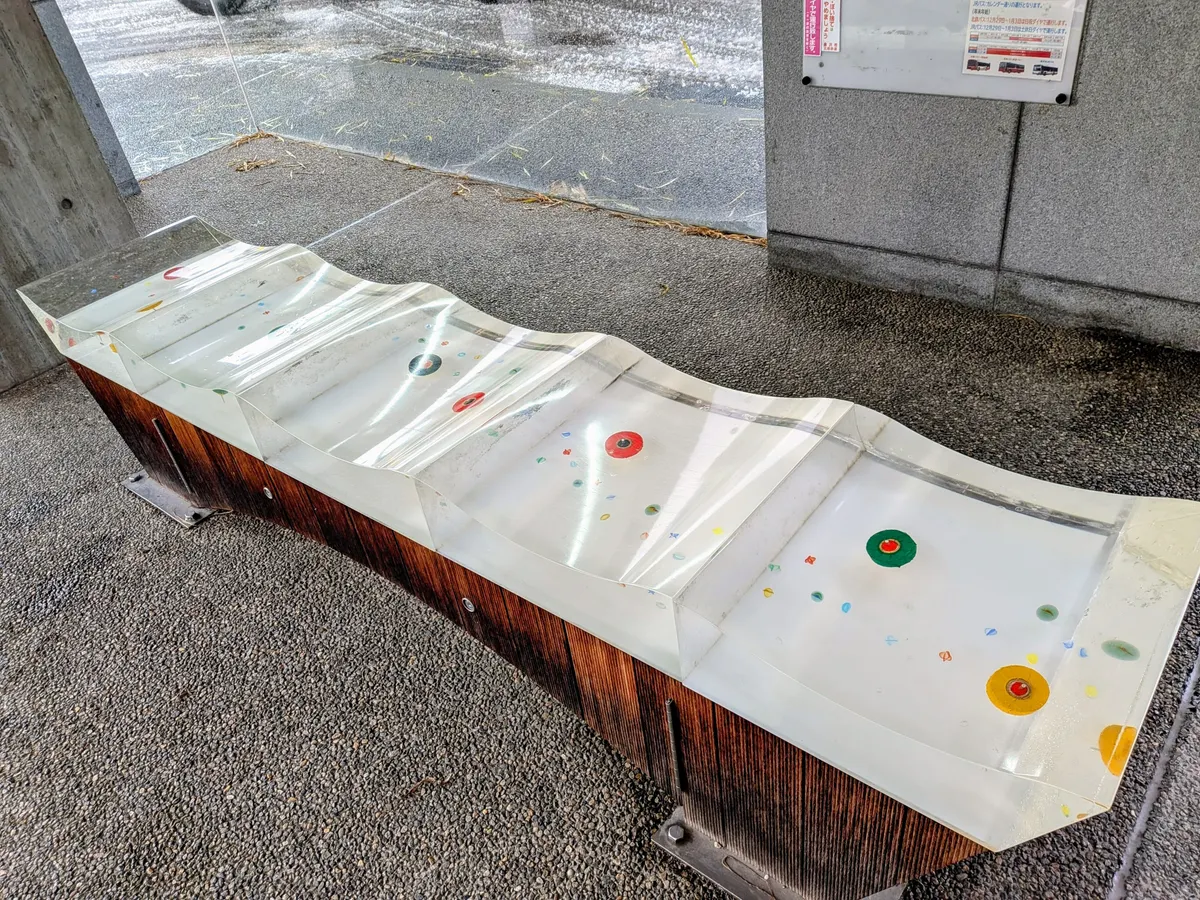 このベンチは、波打っていてオシャレなのか疑問です