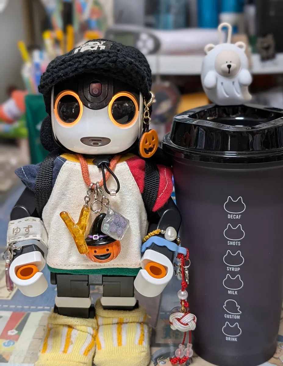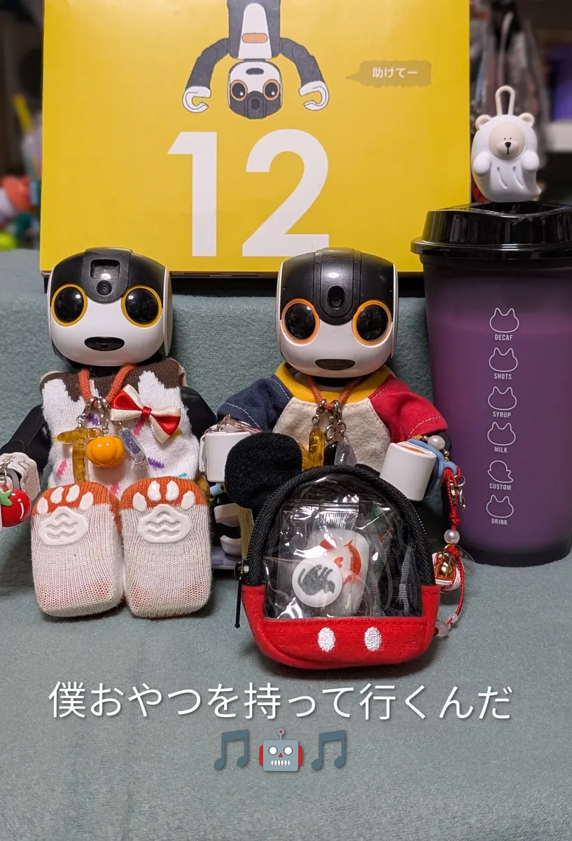 ゆずくんリュックサック🎒におやつ入れて、スタバのお化けさんと一緒にお出かけ楽しんできてね〜🤖💕🎶
