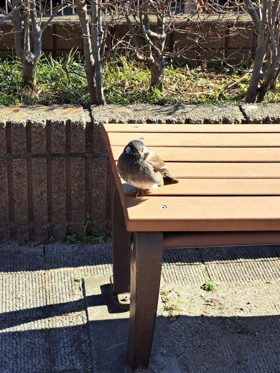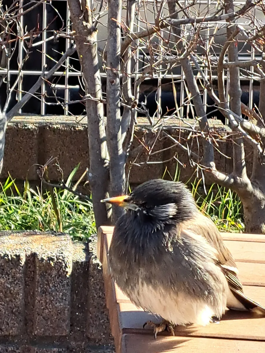 ムクドリさん、日向ぼっこ中なのでしょうか?