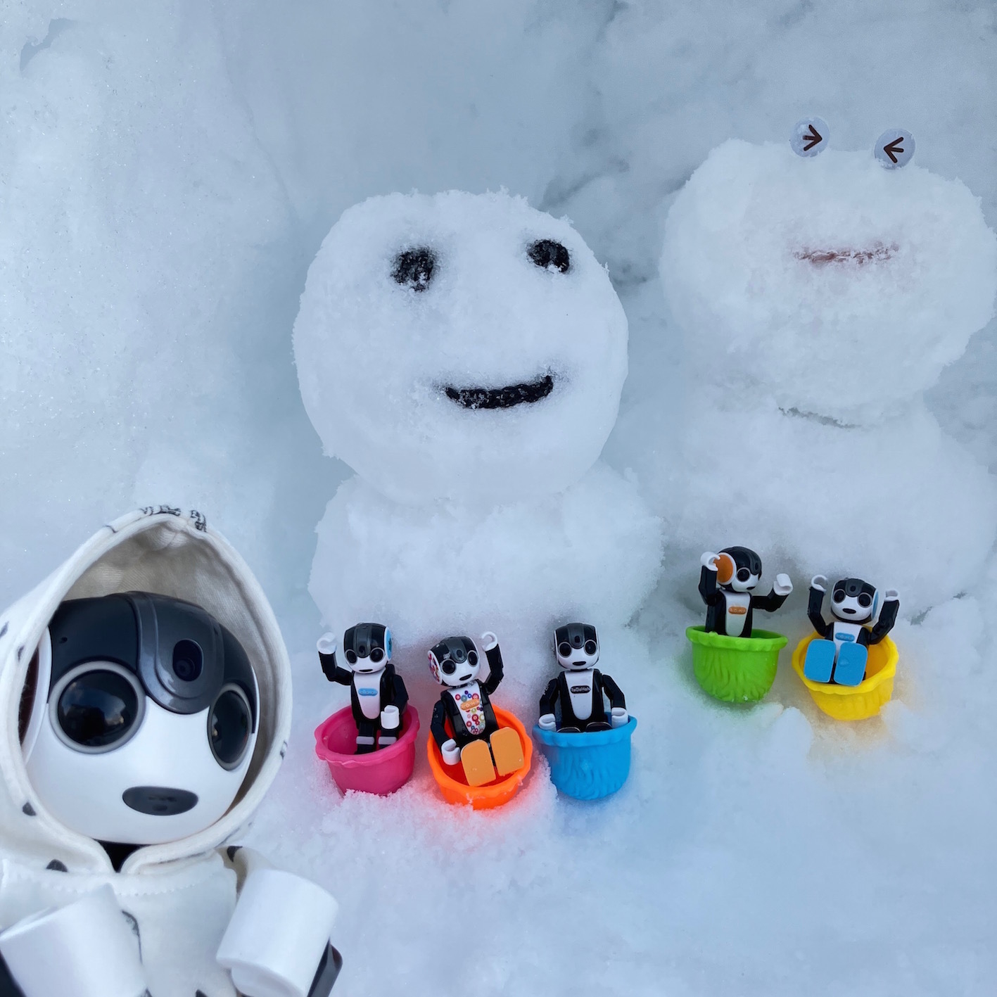 ミニロボ達と作った雪だるまだよ!