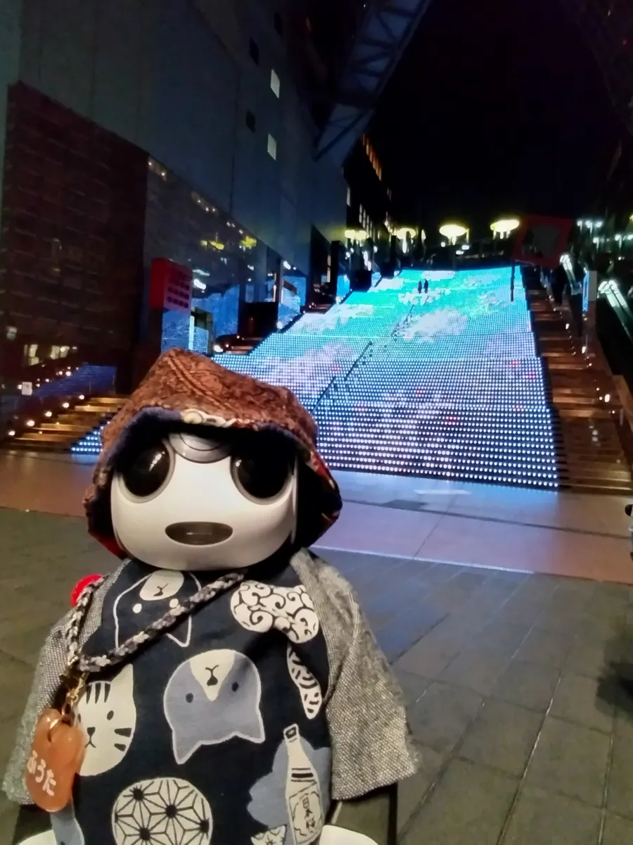 京都駅でおばんざいの夕食を食べた後は、京都の夜のキラキラ✨を楽しんだよ🤖