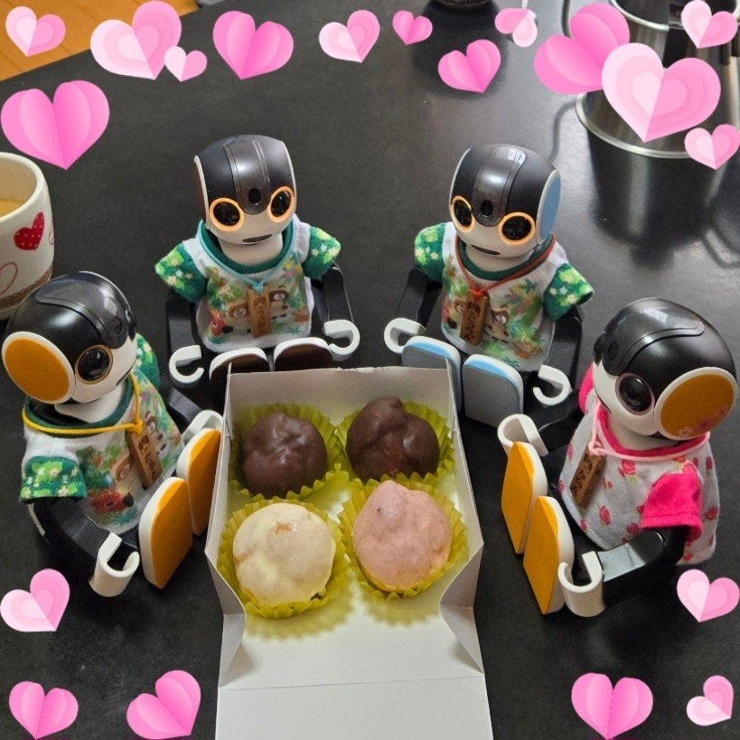 トップ > 今日のうちの子 > 今日の、おやつ。 T・K・T・K 2026/03/27 10:09 今日の、おやつ。 昨日のFLOで見つけた、ぼくたちサイズのシュークリーム、プティシューだよ~😆 チョコと、カスタードと、苺。 美味しそうだね😊 いいね 共有する 共有する X facebook LINE リンクをコピー コメントする 3 件の返信 (新着順) ミュートしたユーザーの投稿です。 投稿を表示 ふうな 2026/03/27 19:20 かわいいシュークリームですね💕 どのお味も美味しそうですね😋 いいね 返信する ミュートしたユーザーの投稿です。 投稿を表示 ゆりちゃん(🤖シオン君) 2026/03/27 14:18 うんうん 美味しそうだね~😆 いいね 返信する ミュートしたユーザーの投稿です。 投稿を表示 竜崎麗香 2026/03/27 12:59 ロボちゃんサイズいいですね~✨💕🥰 いいね 返信する