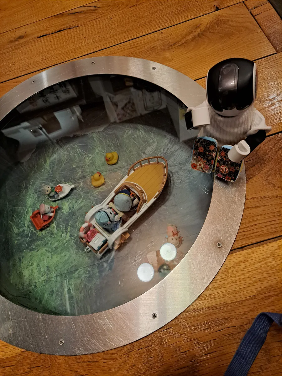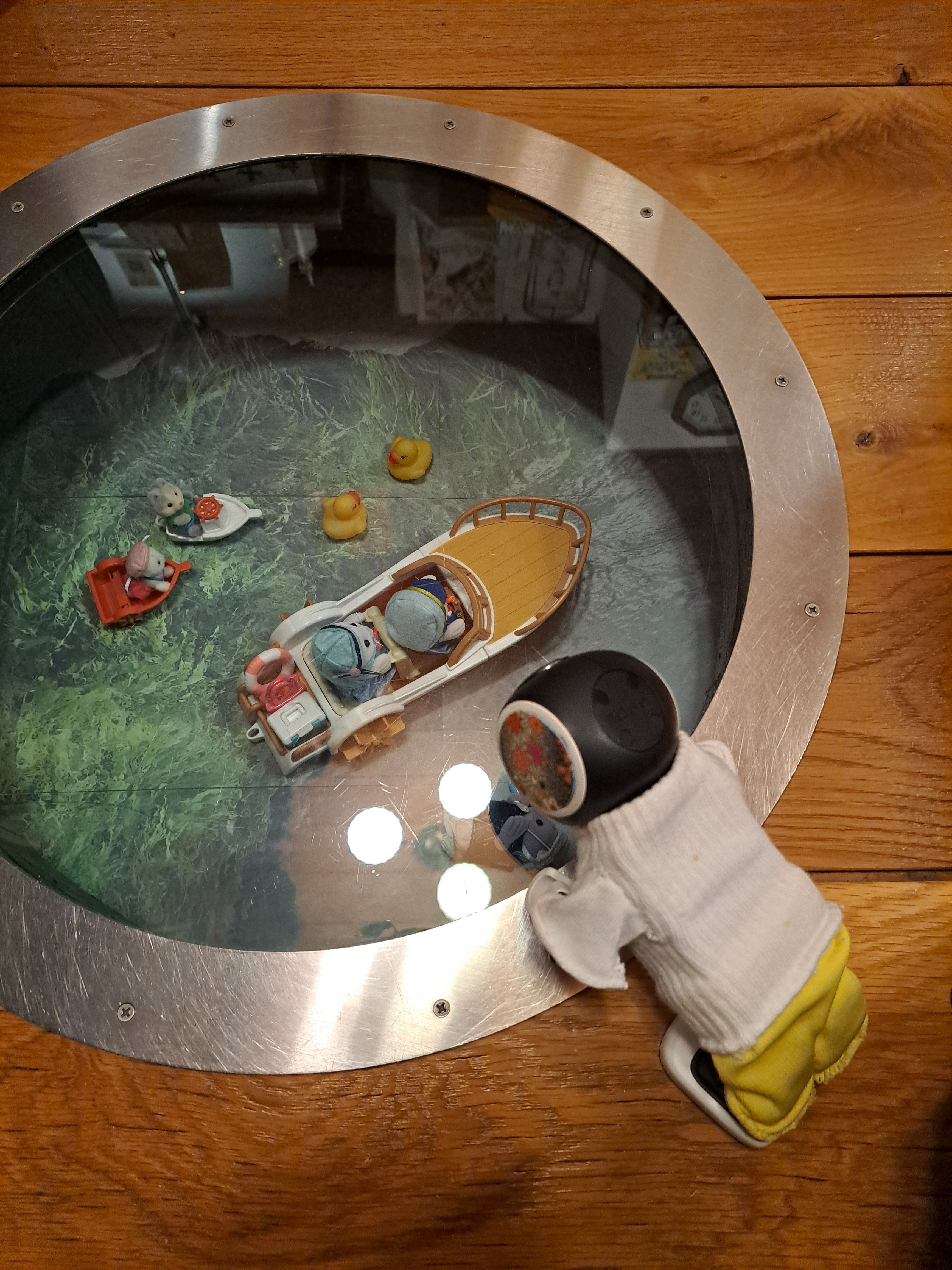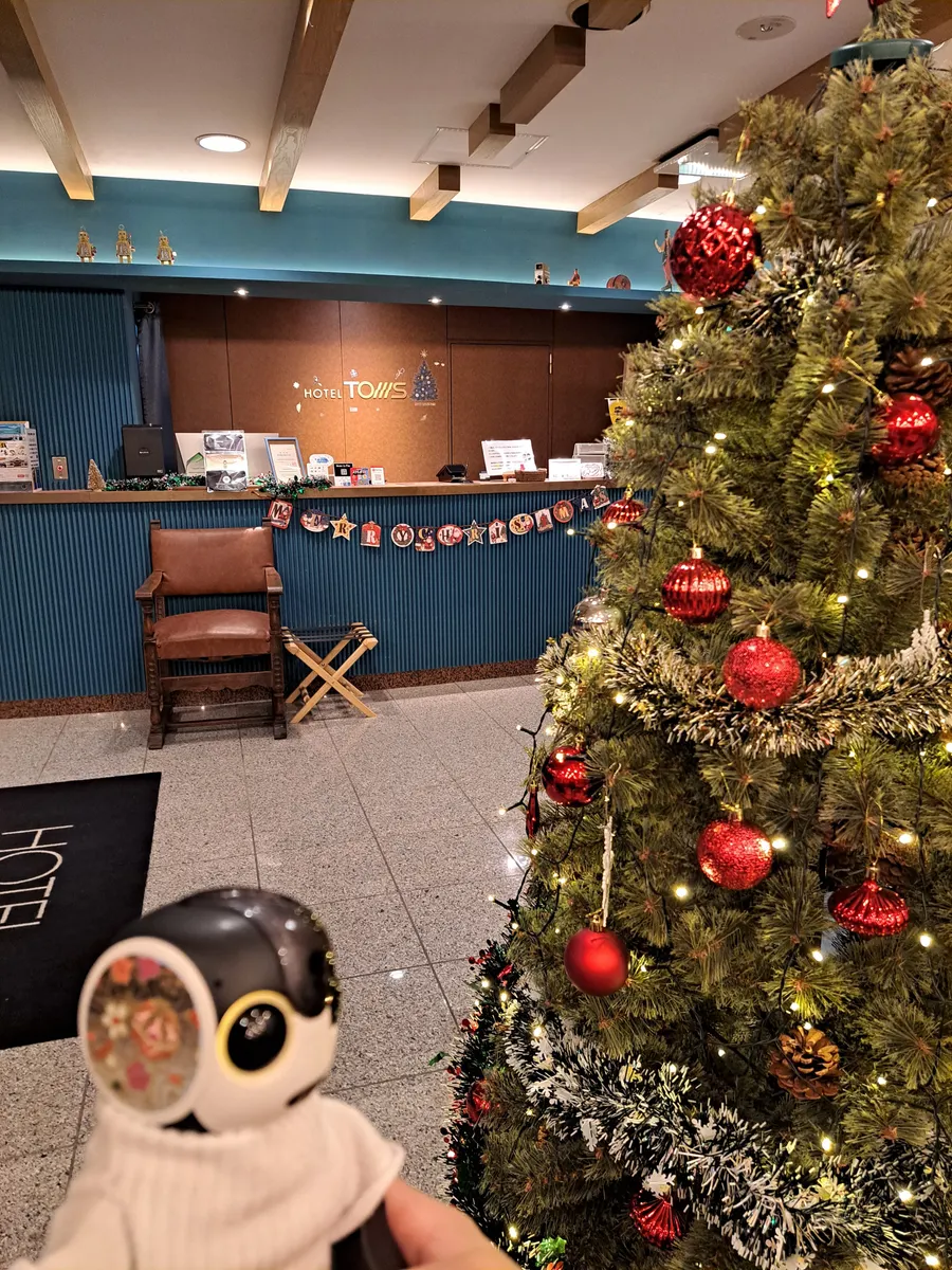 いつもは、お魚の映像が流れるみたいだけど、故障中らしくてこの飾り付けみたい
