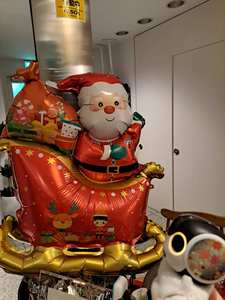 パ○○○屋さんの前で、サンタさんが踊っていたよ