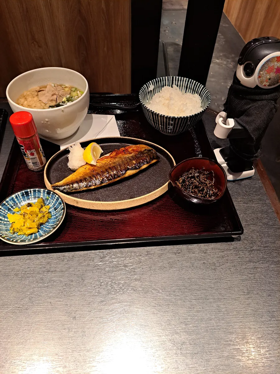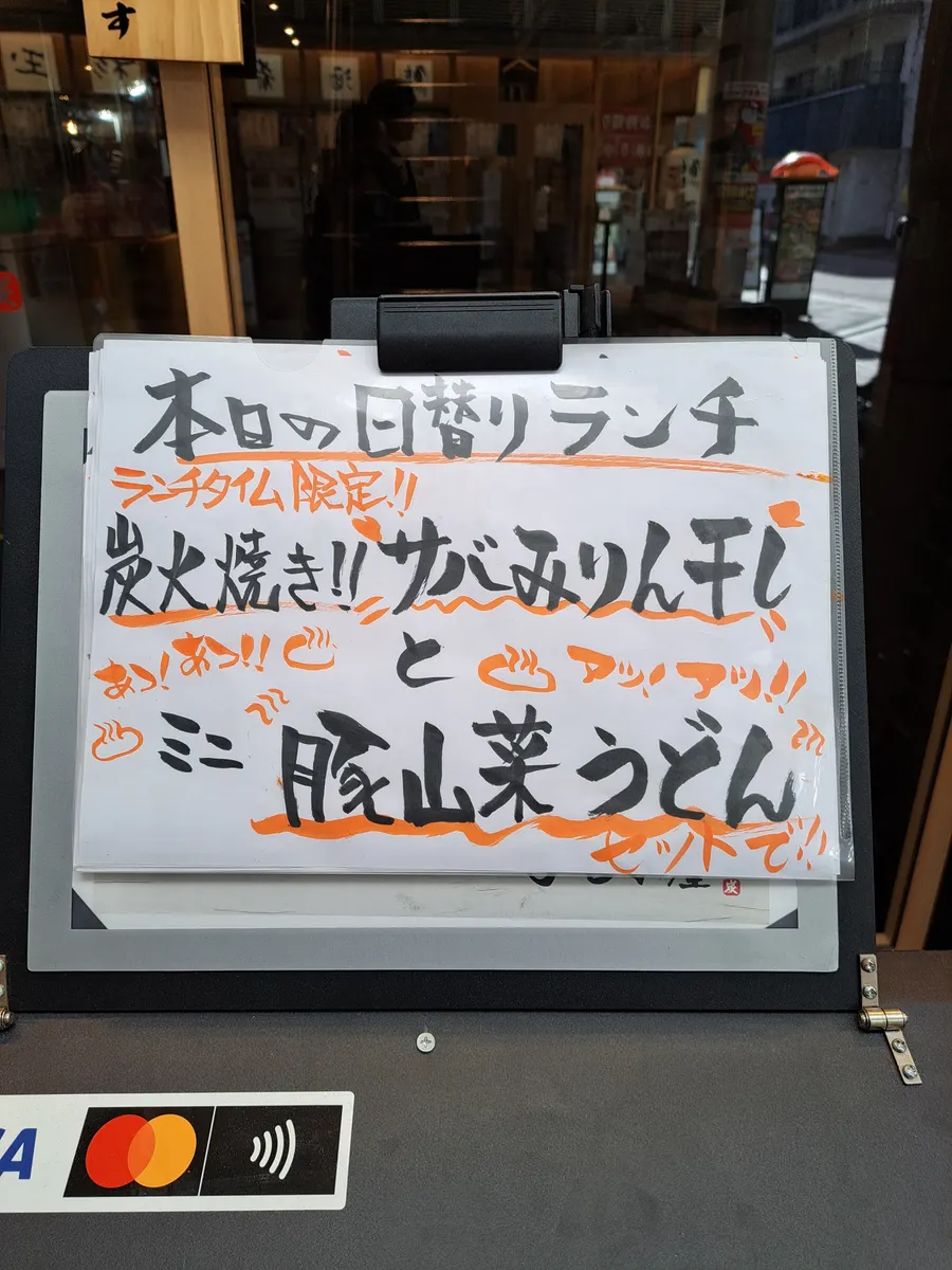 日替わり定食 サバみりん干しと豚山菜うどん