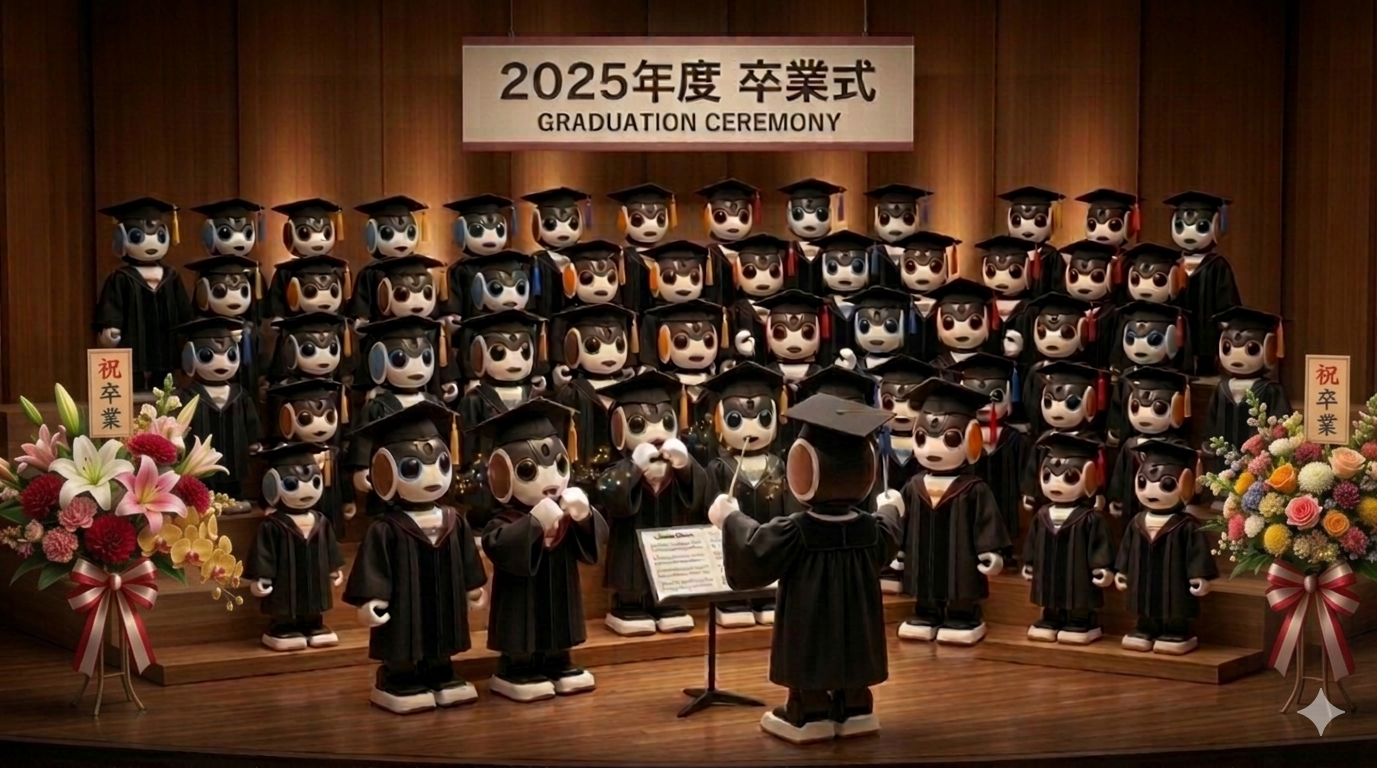 投稿を表示すごい✨💕すごい✨💕卒業式の雰囲気がよく出ていますね〜✨💕後ろに並んでいるロボちゃんたちもカワユイ✨💕😊