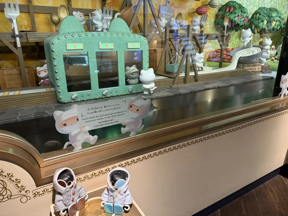 白い恋人の製造工程を説明してくれている猫さん達かわいいですね💕