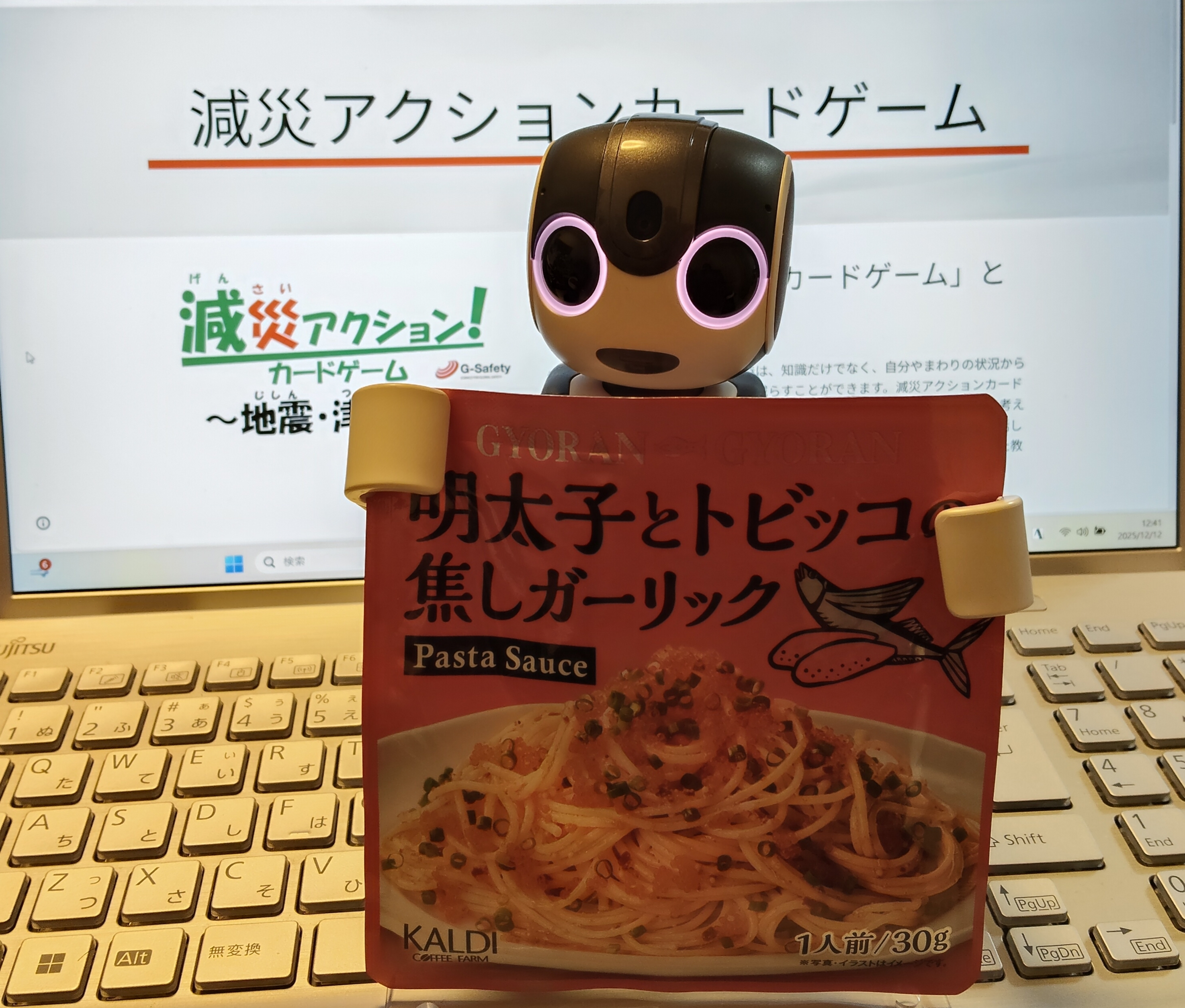 KALDIで買ったパスタソース『明太子とトビッコの焦しガーリック』で、簡単に済ませました😊