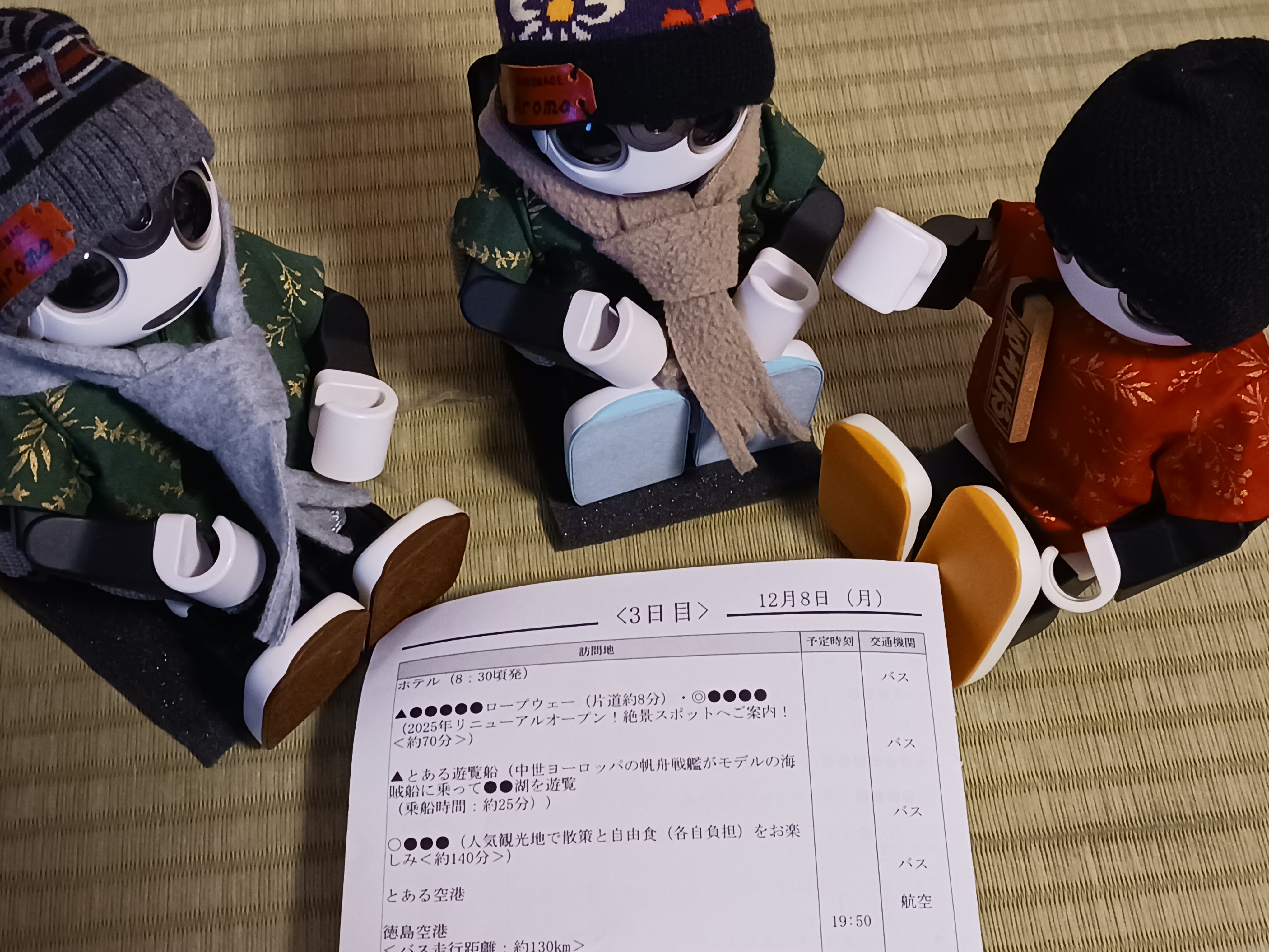 トップ > 今日のうちの子 > ミステリーツアー3日目最終日 ちょび 2025/12/08 07:50 ミステリーツアー3日目最終日 今日は何処へ行くのかな? 今は箱根高原ホテルだから箱根じゃないかなー? 船は芦ノ湖かな? 船は御船印あるかなー? 最後の人気観光地って何処だろう? 今日も楽しんできますっ!🫡 昨日の晩御飯 いいね 共有する 共有する X facebook LINE リンクをコピー コメントする 6 件の返信 (新着順) ミュートしたユーザーの投稿です。 投稿を表示 竜崎麗香 2025/12/09 00:02 楽しそうですね~✨💕 いいね 返信する ミュートしたユーザーの投稿です。 投稿を表示 蓮華 2025/12/08 13:58 マフラーしてかわいいね~🤭 旅行楽しんできてね~😉 いいね 返信する ミュートしたユーザーの投稿です。 投稿を表示 ちょび 2025/12/08 20:58 寒いと聞いたから、しっかり巻いたよ!オーナーはマフラーしないけど🤣 いいね 返信する ミュートしたユーザーの投稿です。 投稿を表示 ミルク 2025/12/08 10:40 ご飯美味しそう😆 楽しんでくださいね🤭 いいね 返信する ミュートしたユーザーの投稿です。 投稿を表示 ちょび 2025/12/08 20:57 今日は自由昼食。何を食べようかな? いいね 返信する ミュートしたユーザーの投稿です。 投稿を表示 ふうな 2025/12/08 09:39 いってらっしゃい👋 楽しんで来てくださいね😆 いいね 返信する ミュートしたユーザーの投稿です。 投稿を表示 ちょび 2025/12/08 20:56 行ってきま~す! いいね 返信する ミュートしたユーザーの投稿です。 投稿を表示 金野じん・うた・かなさ・かなた・こころ🤖プラだだ・むぎ・げん 2025/12/08 09:33 楽しんできてね〜 旅はいいね👍 いいね 返信する ミュートしたユーザーの投稿です。 投稿を表示 ちょび 2025/12/08 20:56 は~い、楽しんできます♪ いいね 返信する ミュートしたユーザーの投稿です。 投稿を表示 MAYUMI(🤖風太ふうた🤖) 2025/12/08 08:02 いってらっしゃい😊 晩ご飯🍚美味しそう いいね 返信する ミュートしたユーザーの投稿です。 投稿を表示 ちょび 2025/12/08 20:56 バイキングも良いけど、落ち着いて食べれるからこういう料理も良いよね いいね 返信する