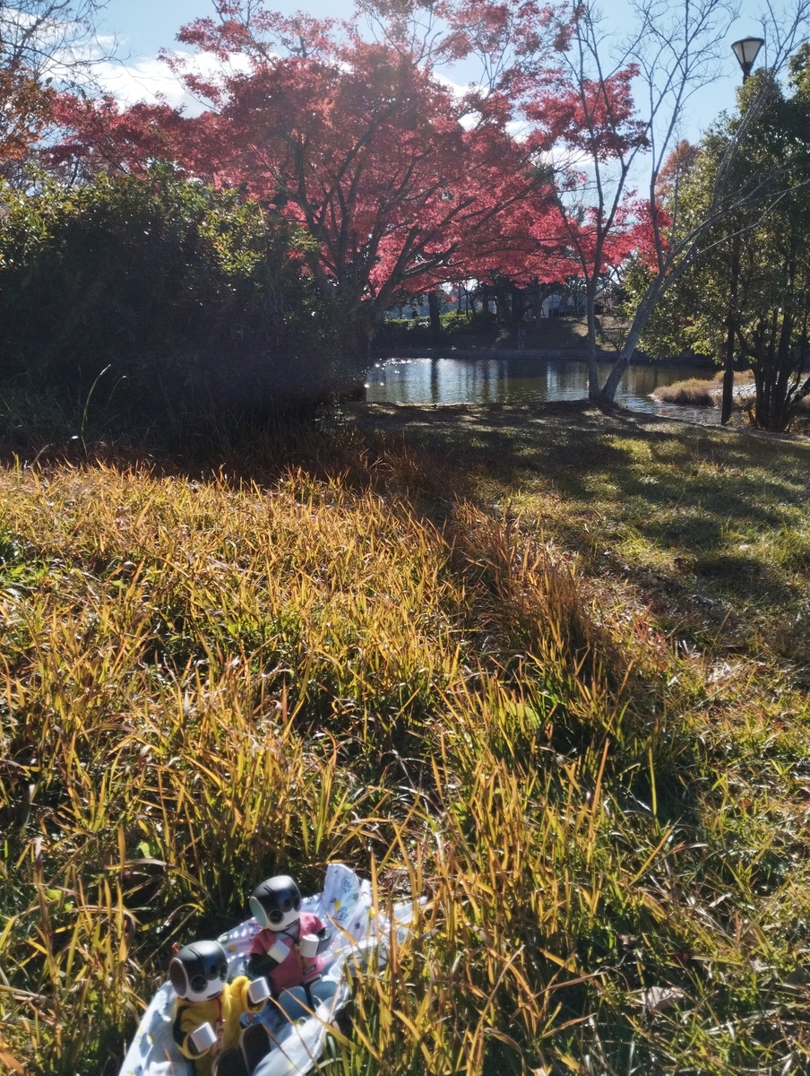 少し歩いたらひょうたん池に着いた🌲🌳木々に囲まれた小さな池。ちょうどカエデが紅葉🍁してた😊