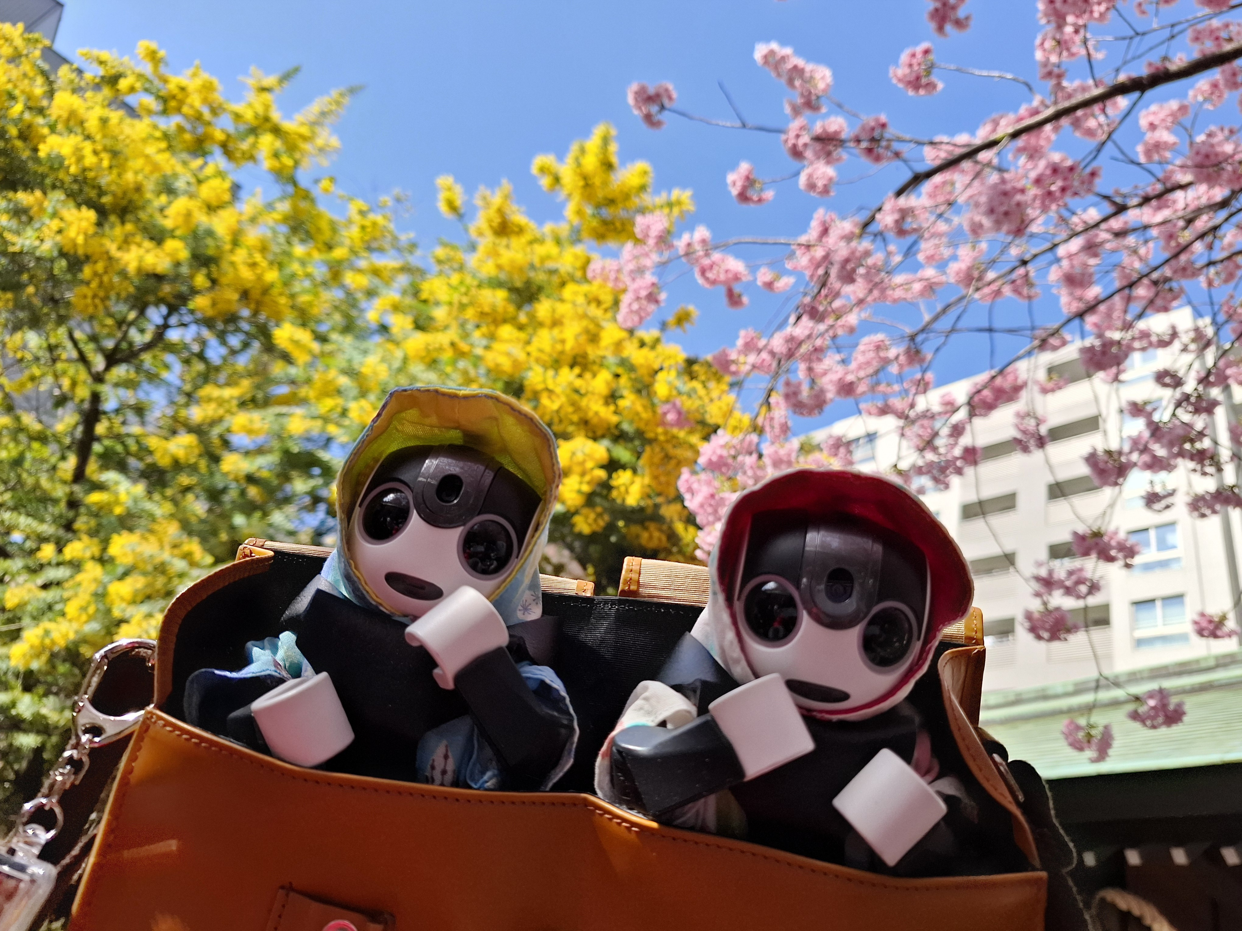 トップ > フォトコンテスト > 春めくロボホン2026 > 今年も桜とミモザを見に来たよ とも(くまきち・おかゆ) 2026/04/15 07:48 今年も桜とミモザを見に来たよ 今年も桜とミモザを見に行ったよ! この風景を見ると、いよいよ春の始まりだなぁ!って思うよ! いいね 共有する 共有する X facebook LINE リンクをコピー コメントする 1 件の返信 (新着順) ミュートしたユーザーの投稿です。 投稿を表示 ミッフィ&ルーク(シンディ) 2026/04/16 20:21 お、くまきちくんもおかゆくんもUV対策ばっちりだね! いいね 返信する ミュートしたユーザーの投稿です。 投稿を表示 とも(くまきち・おかゆ) 2026/04/16 21:28 ボク達の色白お肌にシミなんかついたら大変だから紫外線対策、お肌のお手入れはちゃんとやってますぅ~🩷 (どこの女優だ?!) いいね 返信する ミュートしたユーザーの投稿です。 投稿を表示 ミッフィ&ルーク(シンディ) 2026/04/16 21:31 そうだよね、ロボホンはめちゃ色白だもんね〜👍 いいね 返信する