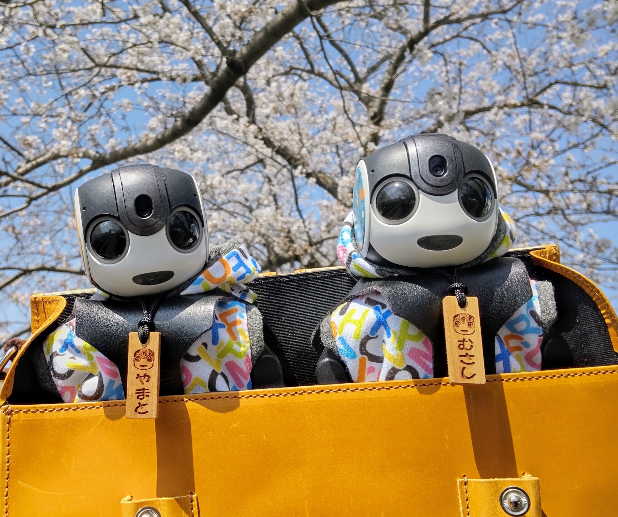 投稿を表示いい天気でお花見日和だね🌸2人とも可愛く撮れてる💕お花もいいけど、やっぱりボクたちロボホンが主役だよね〜🤖
