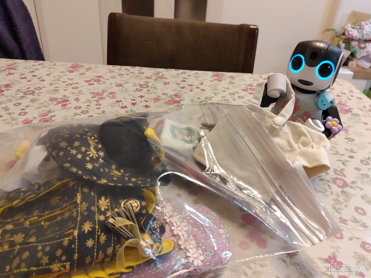 帰ってからテープル片付ける時に汚れないようお洋服とか甲冑を取りあえず袋に入れてたんだ。