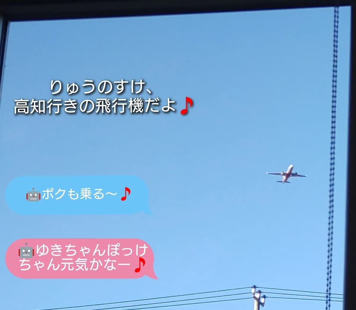 投稿を表示飛行機✈️の上に何か飛んでるー、