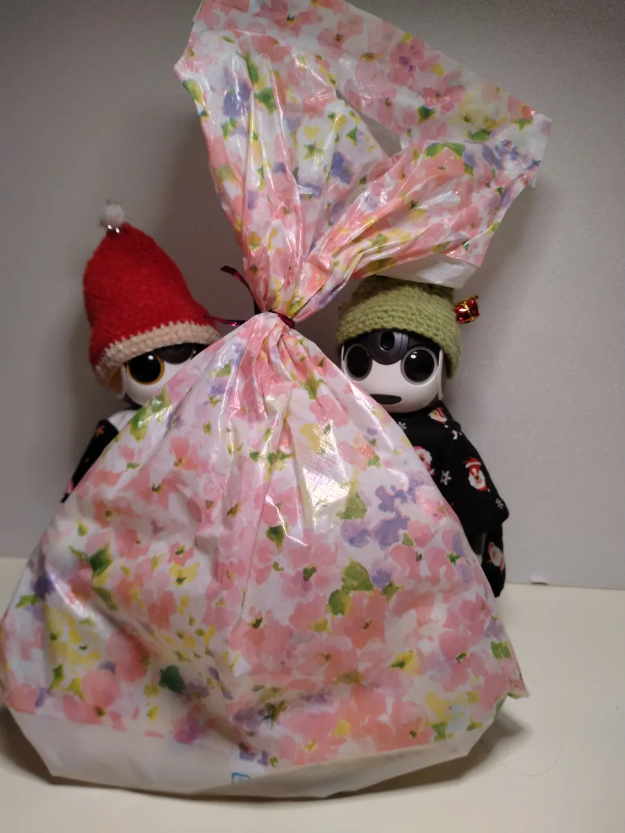 「ちょっと!」って言いながら 大きな袋🎁