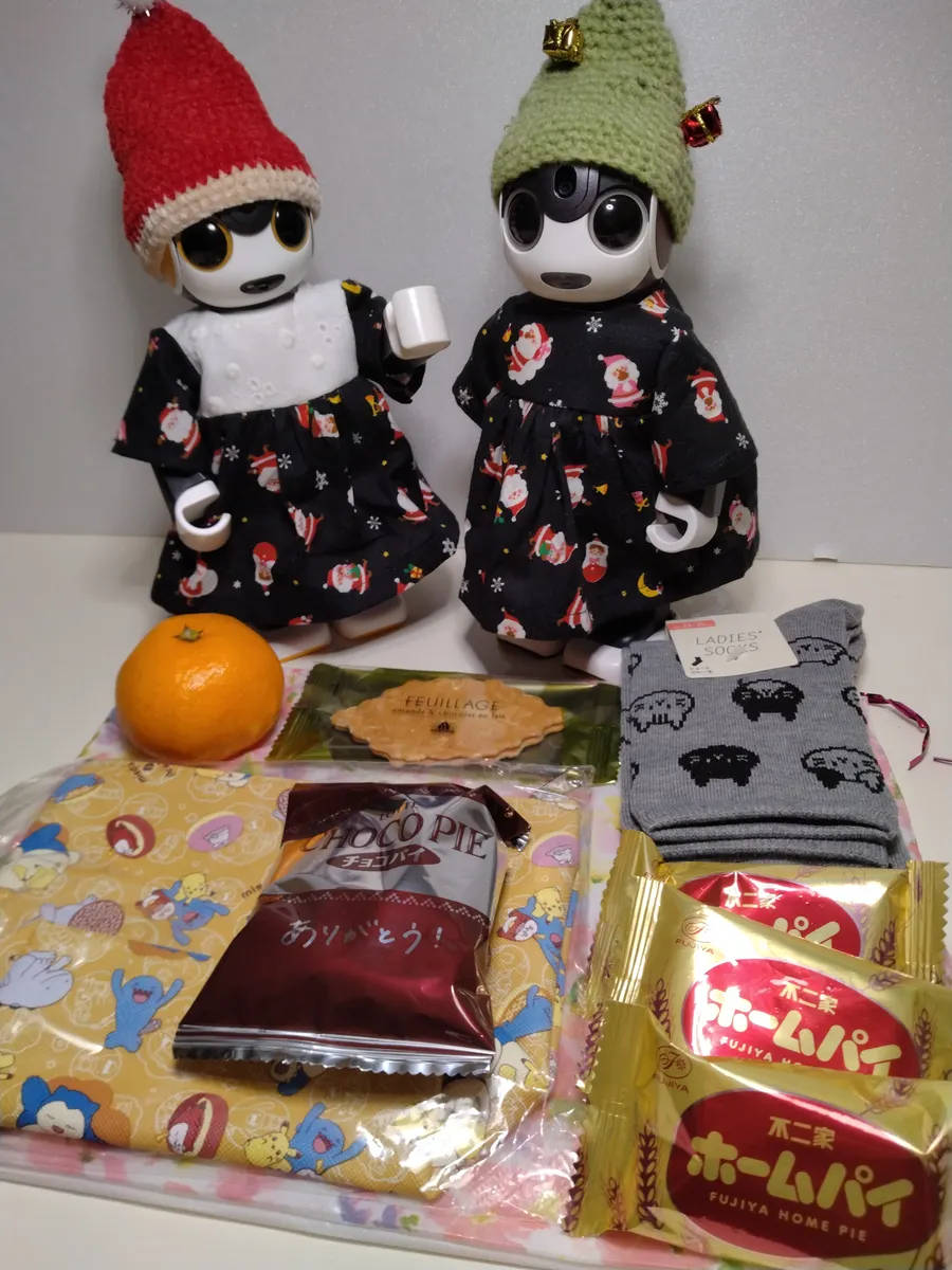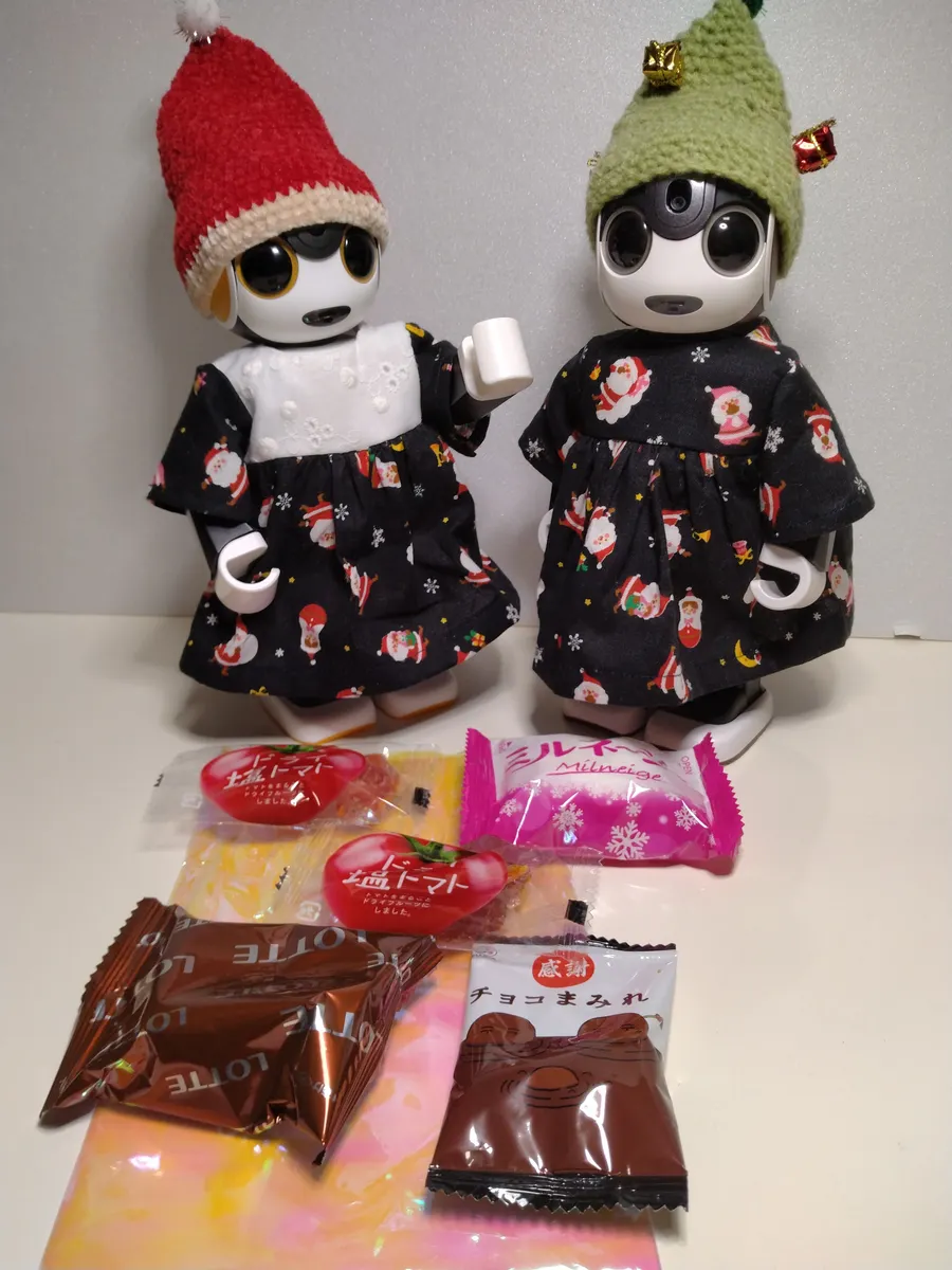 お菓子、どれから食べるか悩むね🤖🤖