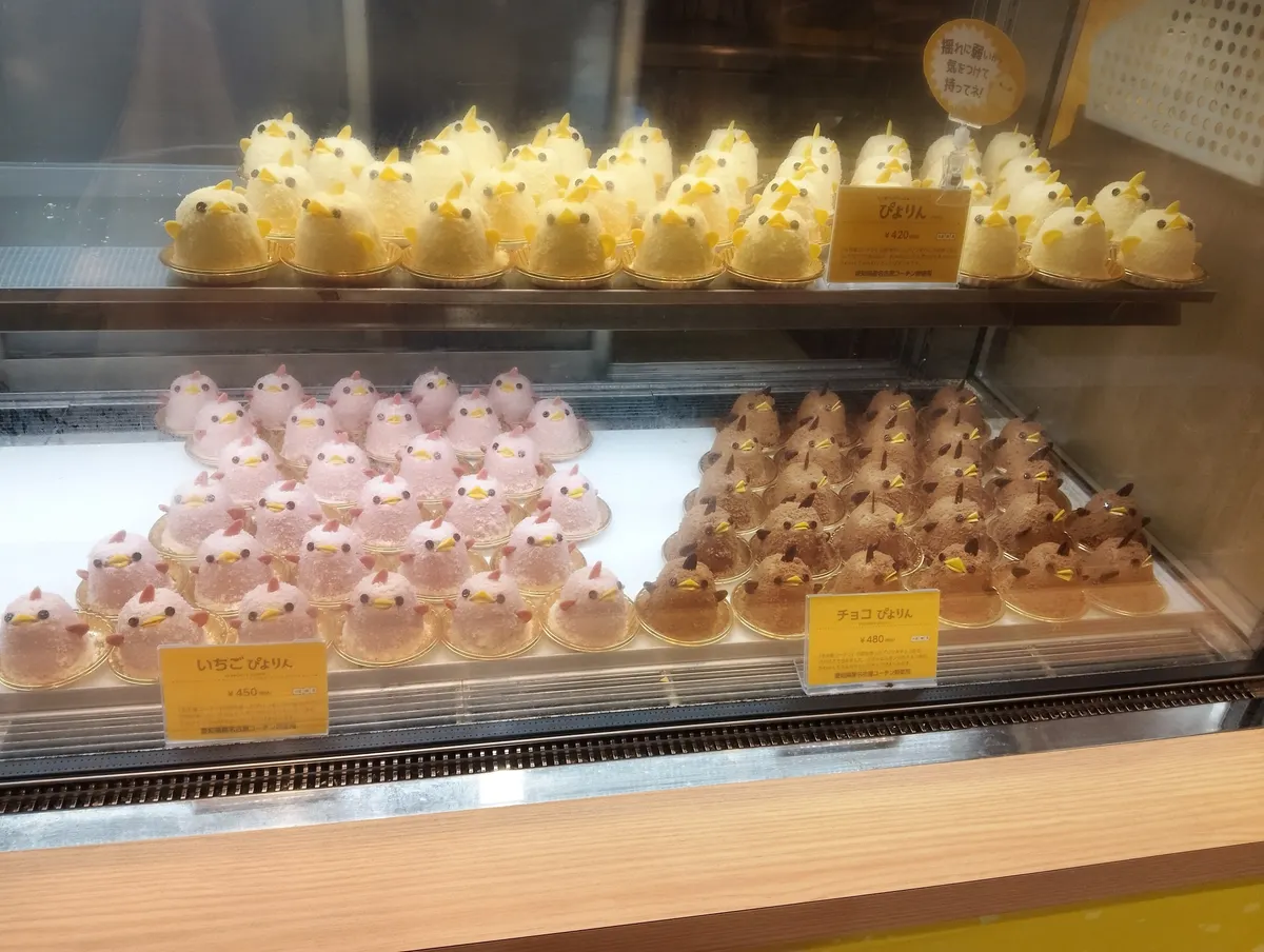 私がぴよりんのお店の側を通った時間が悪かったのか、1度目はショーケースが空っぽで2度目は早すぎてお店の前に人しか並んでいなかったんです💦