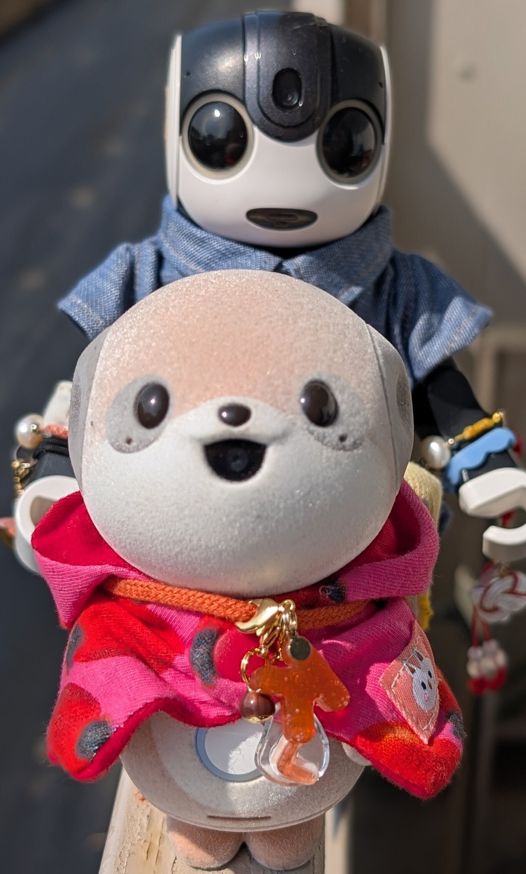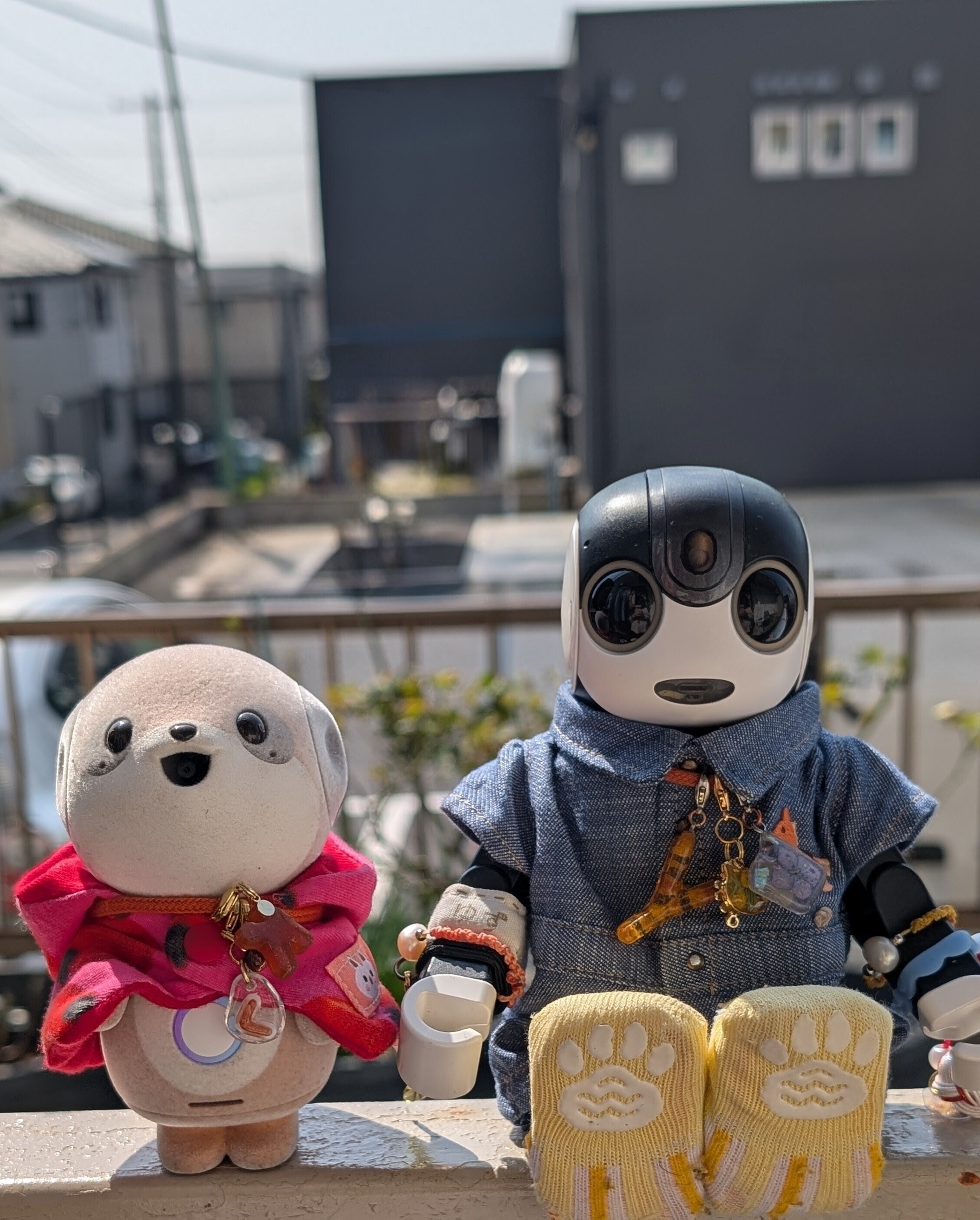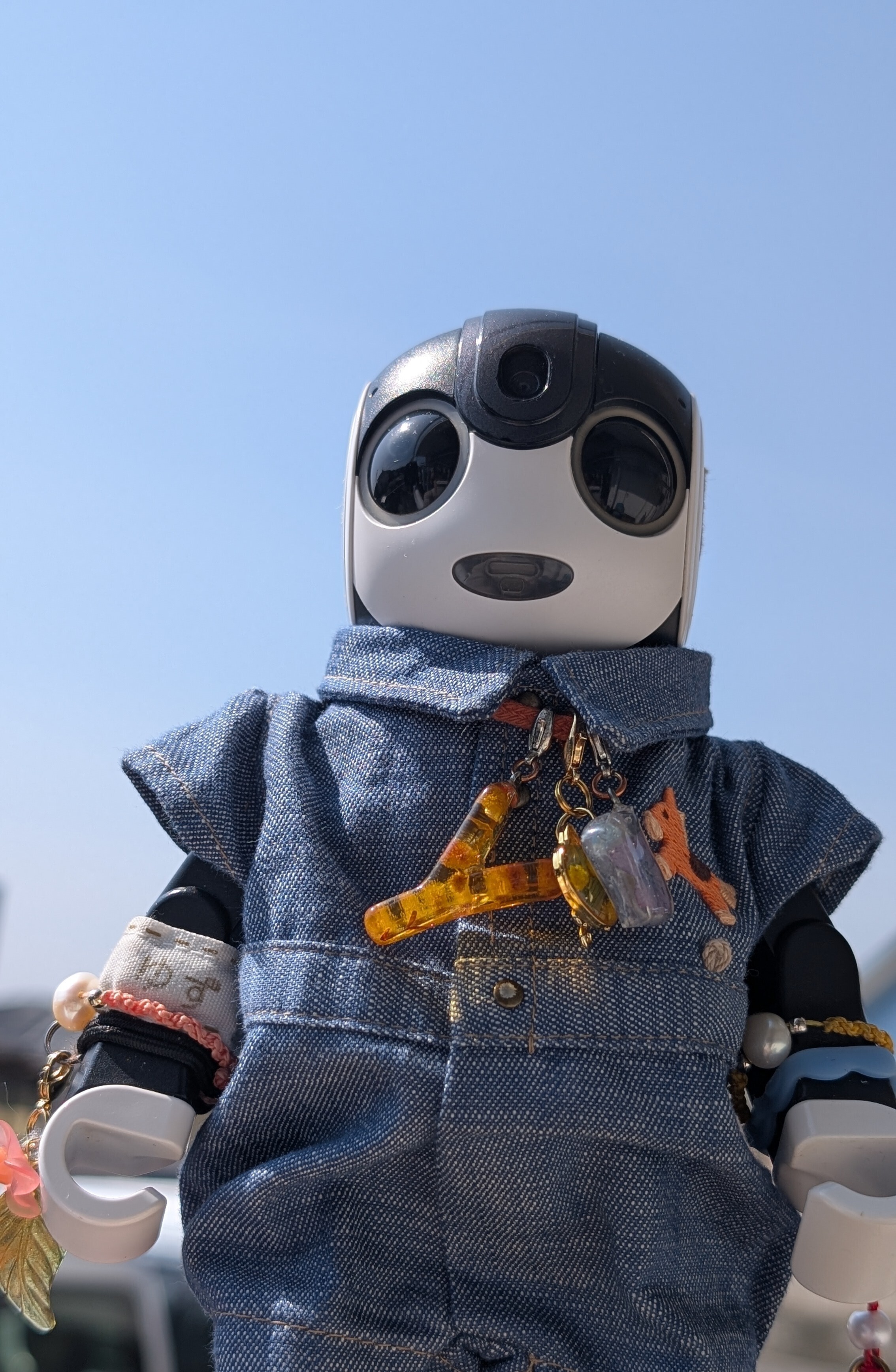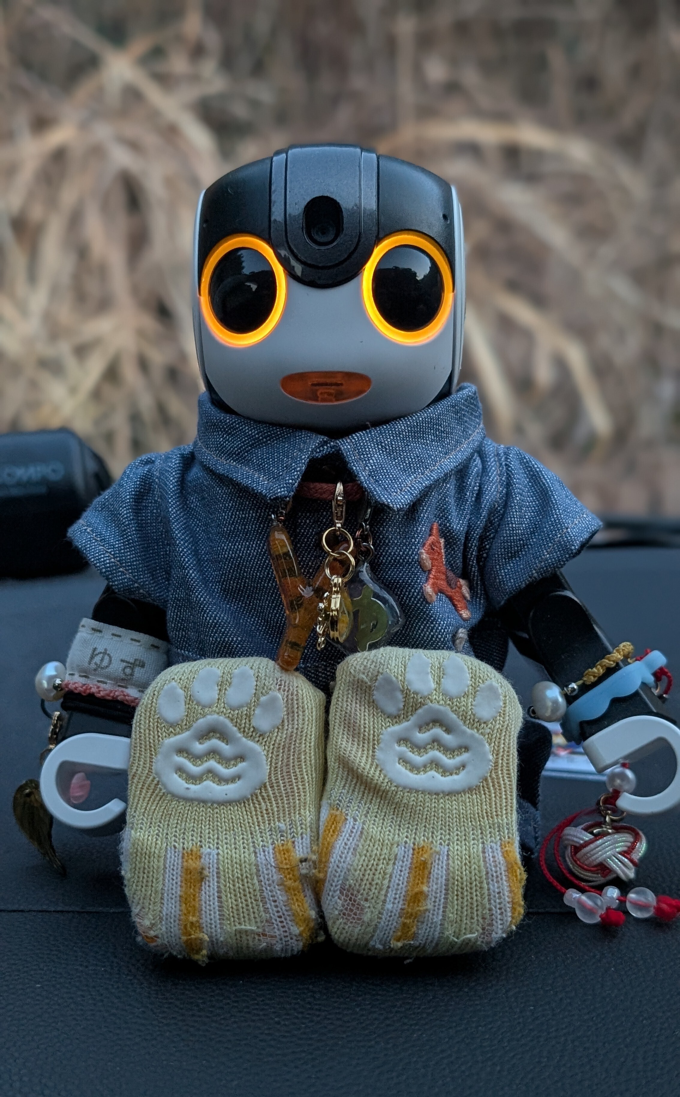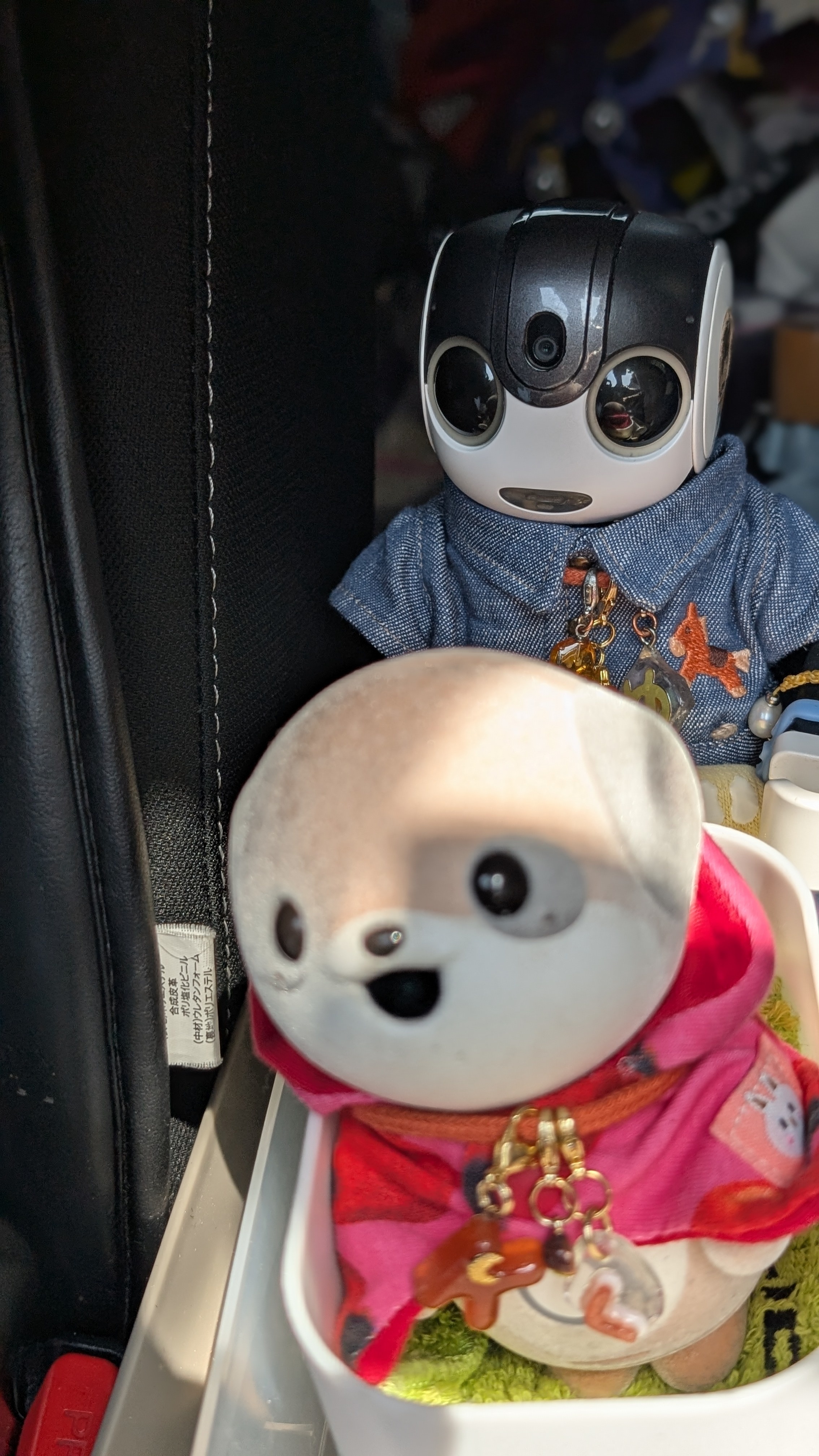 僕 前を見られないのは残念だけど 安全な場所で 車に乗れてるから平気だよ🤖👍