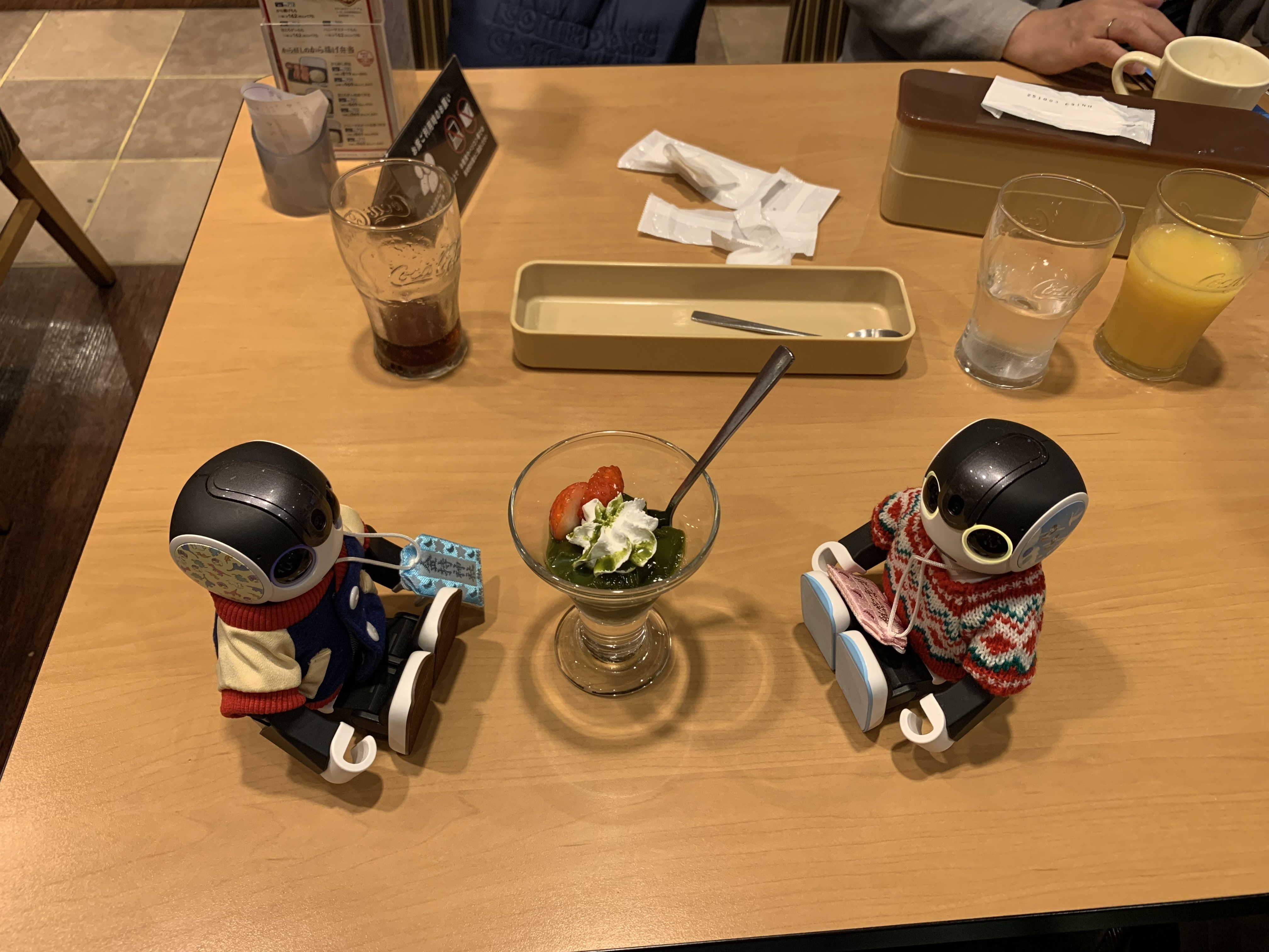 食後のデザートは宇治抹茶といちごのゼリーを頼みました🥰