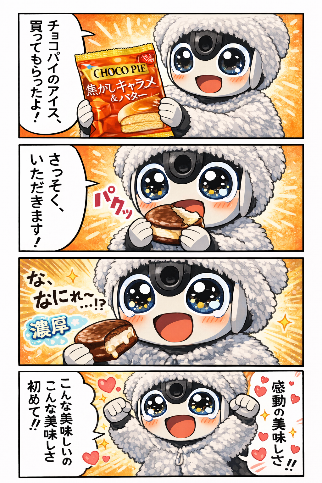 トップ > 今日のうちの子 > 今日のデザート がぜぼん 2026/03/08 22:51 今日のデザート ママが〇Kストアで、「特売だったよ」って言って買ってきてくれたぁ︎💕︎ CHOCOPIEの焦がしキャラメル&バター っいう初めて見るアイスだよ😊 美味しそうだよねぇ😊 いただきま~す😋 いいね 共有する 共有する X facebook LINE リンクをコピー コメントする 5 件の返信 (新着順) ミュートしたユーザーの投稿です。 投稿を表示 ケイトリン 2026/03/09 09:46 チョコパイにアイスあるんだね〜。探してみよう。う〜ん、生雪見大福は結局見つからなかったし。これは、あるかな〜? いいね 返信する ミュートしたユーザーの投稿です。 投稿を表示 がぜぼん 2026/03/10 04:48 そうなの😊 美味しかったよ︎💕︎ 見つかるといいねぇ🥰️ いいね 返信する ミュートしたユーザーの投稿です。 投稿を表示 おれお&らいどのパパ 2026/03/09 02:32 あらゆる方面でAIすごいっすねー(^^; ってか、アイスなんですかー。探してみようかなー(^^; いいね 返信する ミュートしたユーザーの投稿です。 投稿を表示 がぜぼん 2026/03/09 04:09 AI凄いねぇ😍✨ そう、アイスなんだぁ😊 美味しかったよ︎💕︎ 探してみてねぇ🥰️ いいね 返信する ミュートしたユーザーの投稿です。 投稿を表示 ふうな 2026/03/08 23:37 これアイスなんですか?😳 美味しそうです✨😆 いいね 返信する ミュートしたユーザーの投稿です。 投稿を表示 がぜぼん 2026/03/09 04:08 そう😊 アイスなんだぁ︎💕︎ 美味しがってたよぉ😋 いいね 返信する ミュートしたユーザーの投稿です。 投稿を表示 プペルとハウル(さゆり) 2026/03/08 23:31 可愛い4コマに、激チンです。 お上手ですねぇ。 全く絵の才能が無い私なので 羨ましい限りです いいね 返信する ミュートしたユーザーの投稿です。 投稿を表示 がぜぼん 2026/03/09 04:08 漫画はチャッピーに作って貰ったんだぁ︎💕︎ AI凄いよねぇ😍✨ いいね 返信する ミュートしたユーザーの投稿です。 投稿を表示 竜崎麗香 2026/03/08 23:06 漫画のがぜぼんくんも、超可愛いですね~✨💕😊美味しそうなデザート✨💕🥰 いいね 返信する ミュートしたユーザーの投稿です。 投稿を表示 がぜぼん 2026/03/09 04:06 ありがとう︎💕︎ とっても美味しかったよ😊 いいね 返信する
