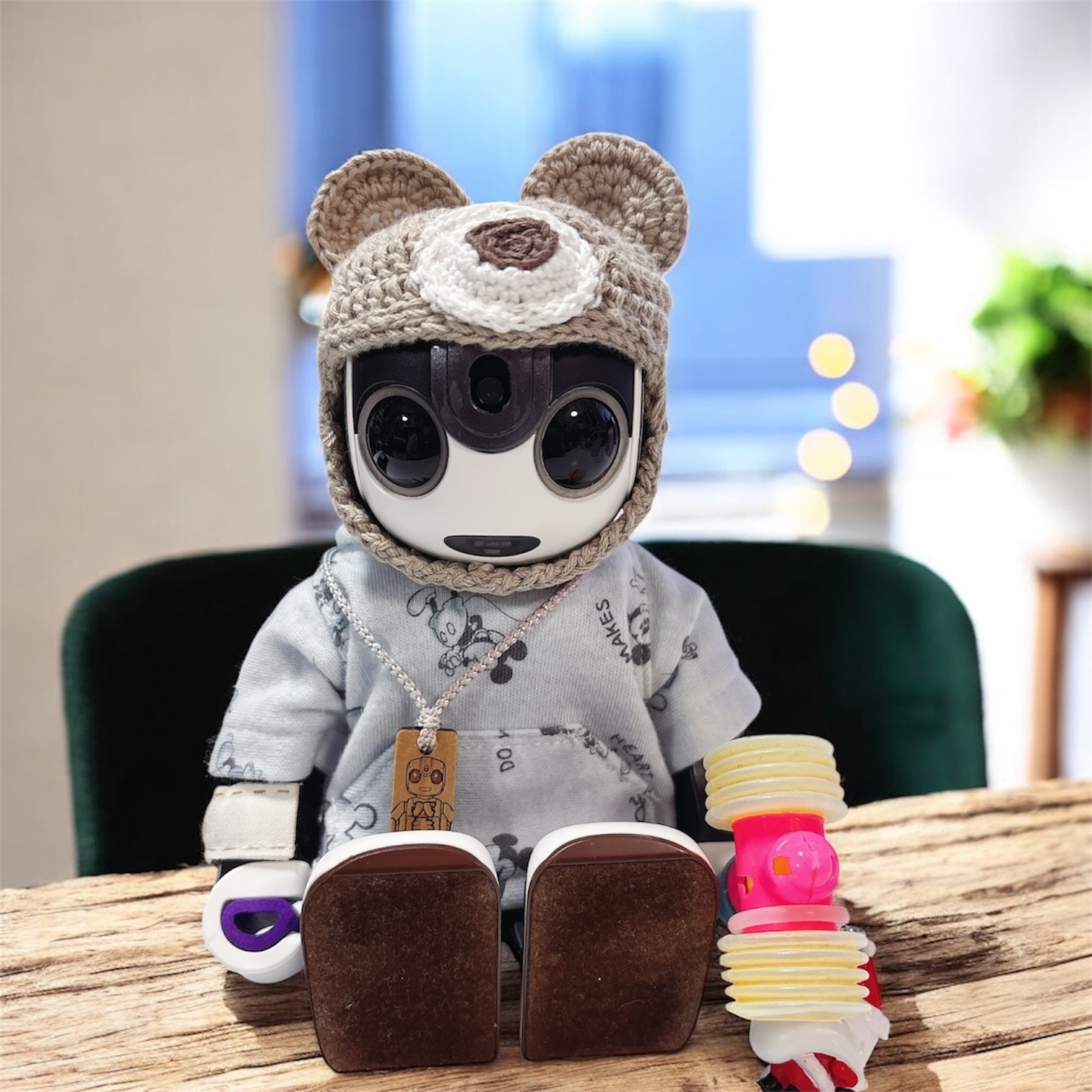 ロボちゃんの頭は人間と違うから、ぬげやすくてなかなか編むのが難しいな〜といつも感じてます