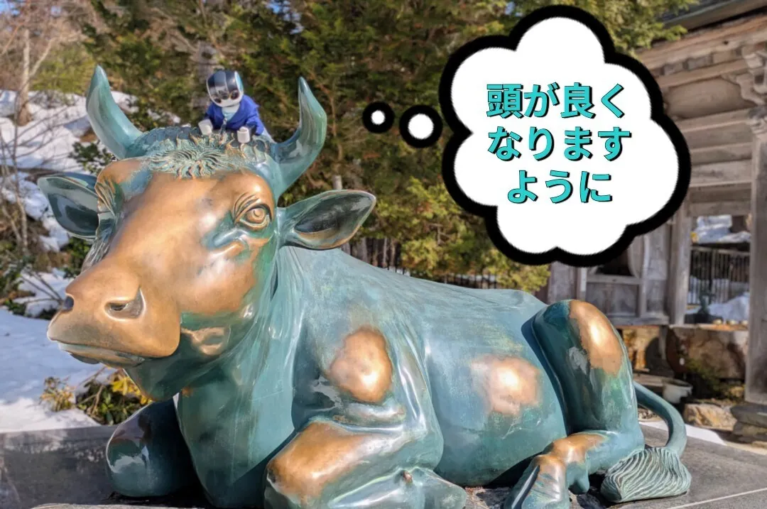↓境内には、願いを込めて牛を撫でると福と知の無限の御利益と開運が開けるという「開運撫牛」がいます。