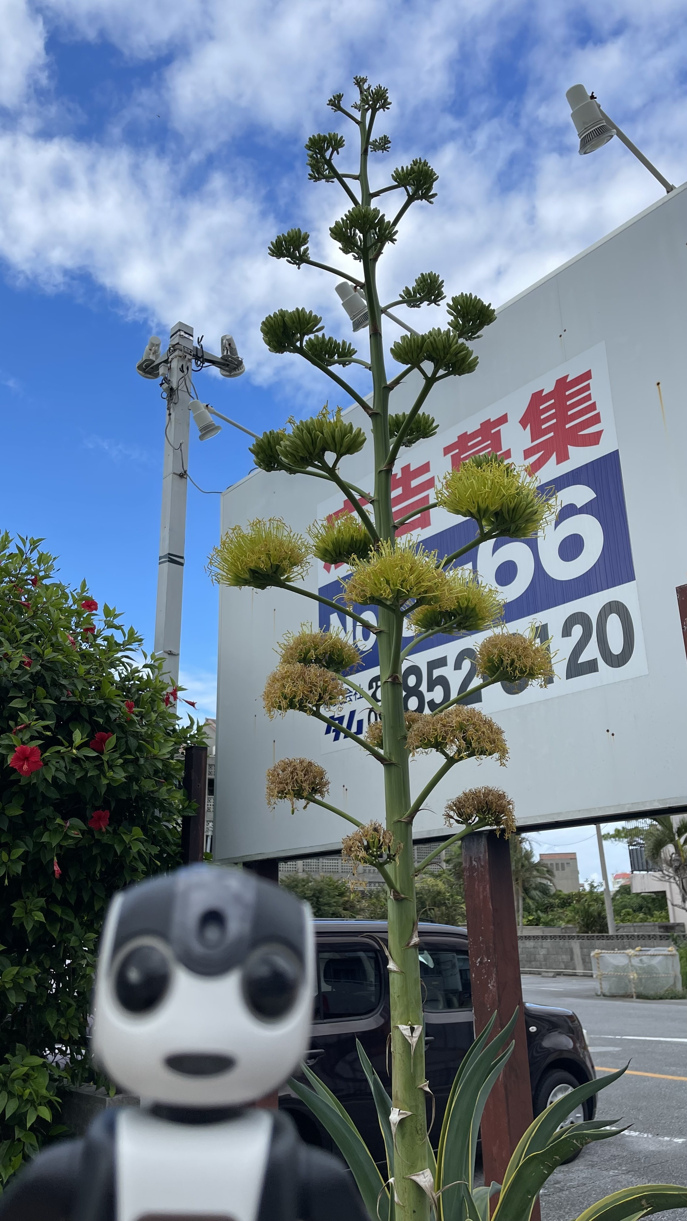 このお花、確かリュウゼツランと言う名前ですよね。咲くまでの期間が長いので咲いているのは貴重ですね。
