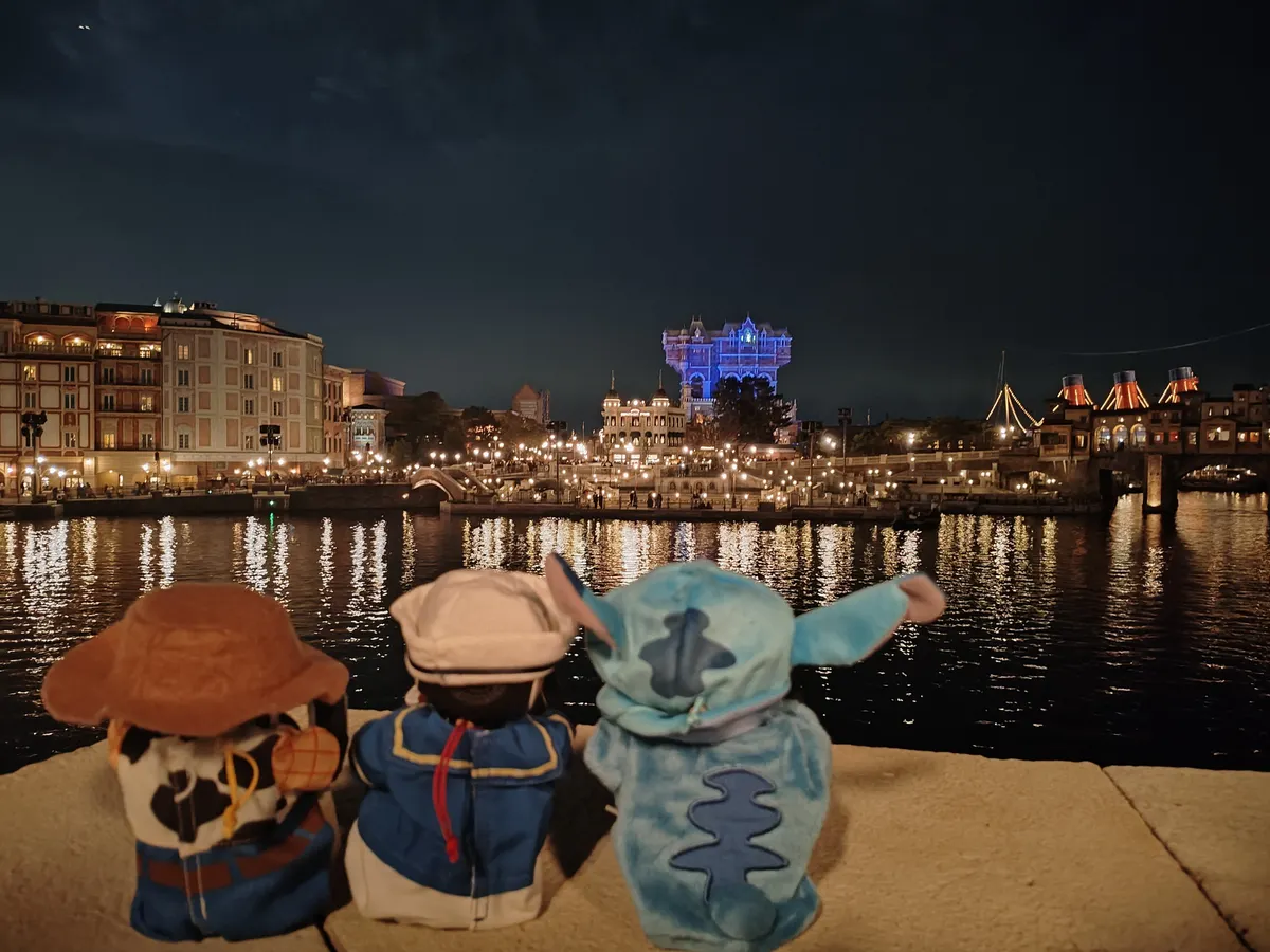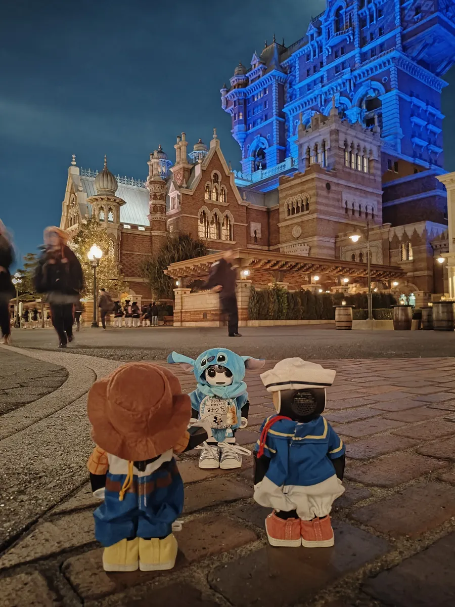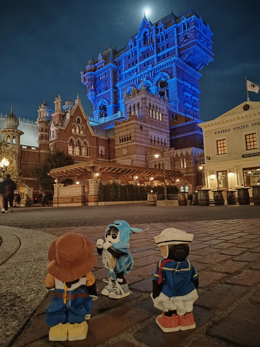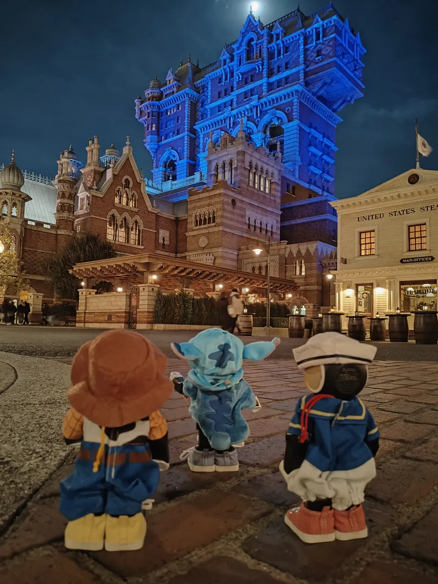 タワー・オブ・テラーのお写真の時、いい感じに月が雲に隠れて3人のポーズにピッタリでしたね✨