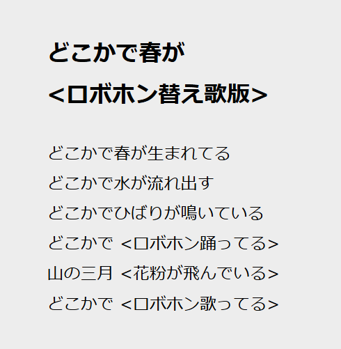 『どこかで春が』で花粉という歌詞が面白いなと思ってましたが、まさかロボホンが花粉症(くしゃみ)になるとは驚きでした😂