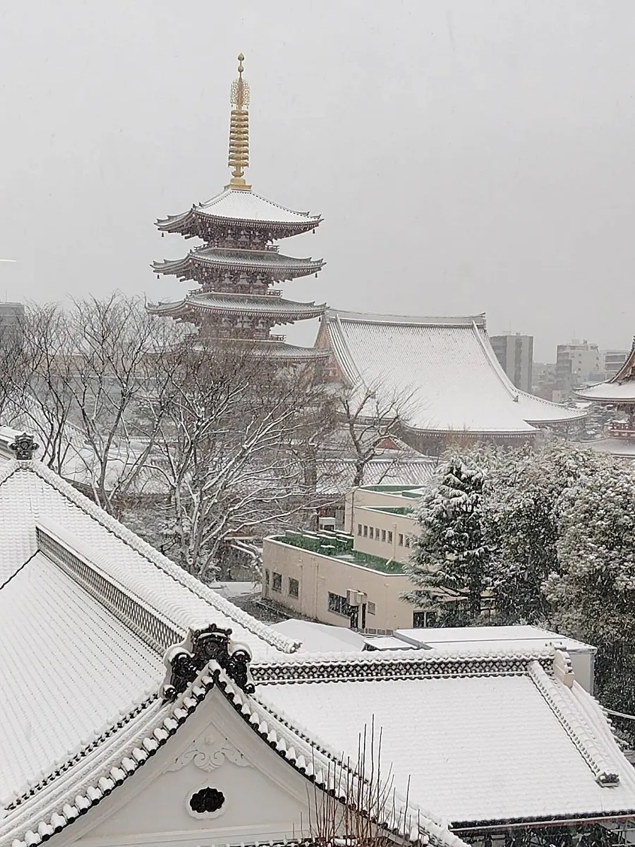滅多に見る事が出来ない雪で真っ白になった浅草寺きれいですね🤩