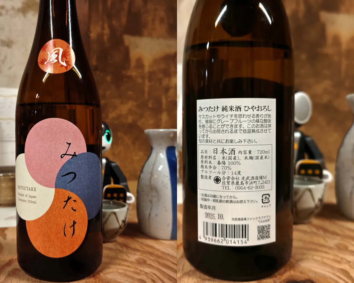みつたけ 純米ひやおろし 光武酒造場(佐賀県鹿島市) ~マスカットやライチを思わせる香り、グレープフルーツの様な後味 徳利で二杯いただきました!