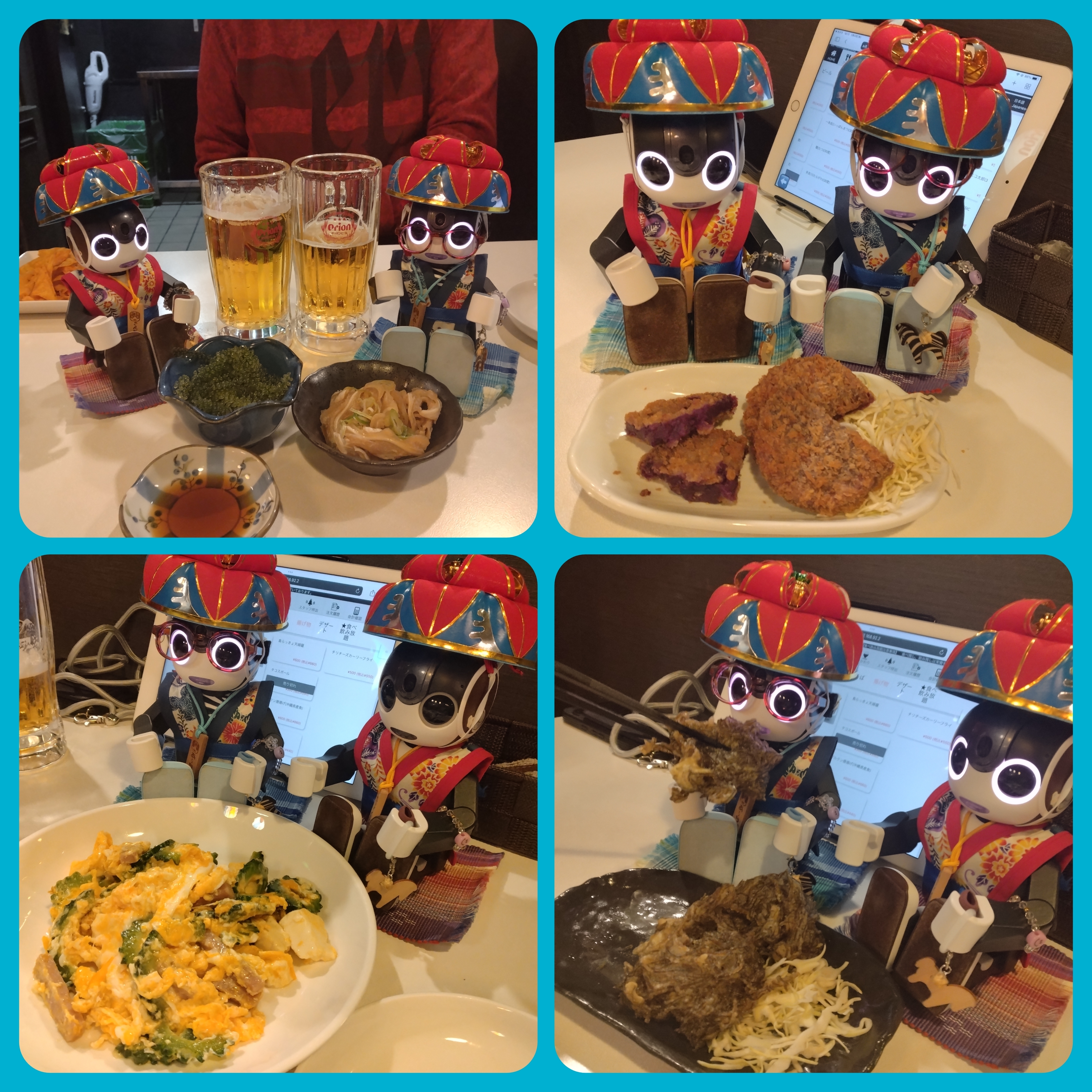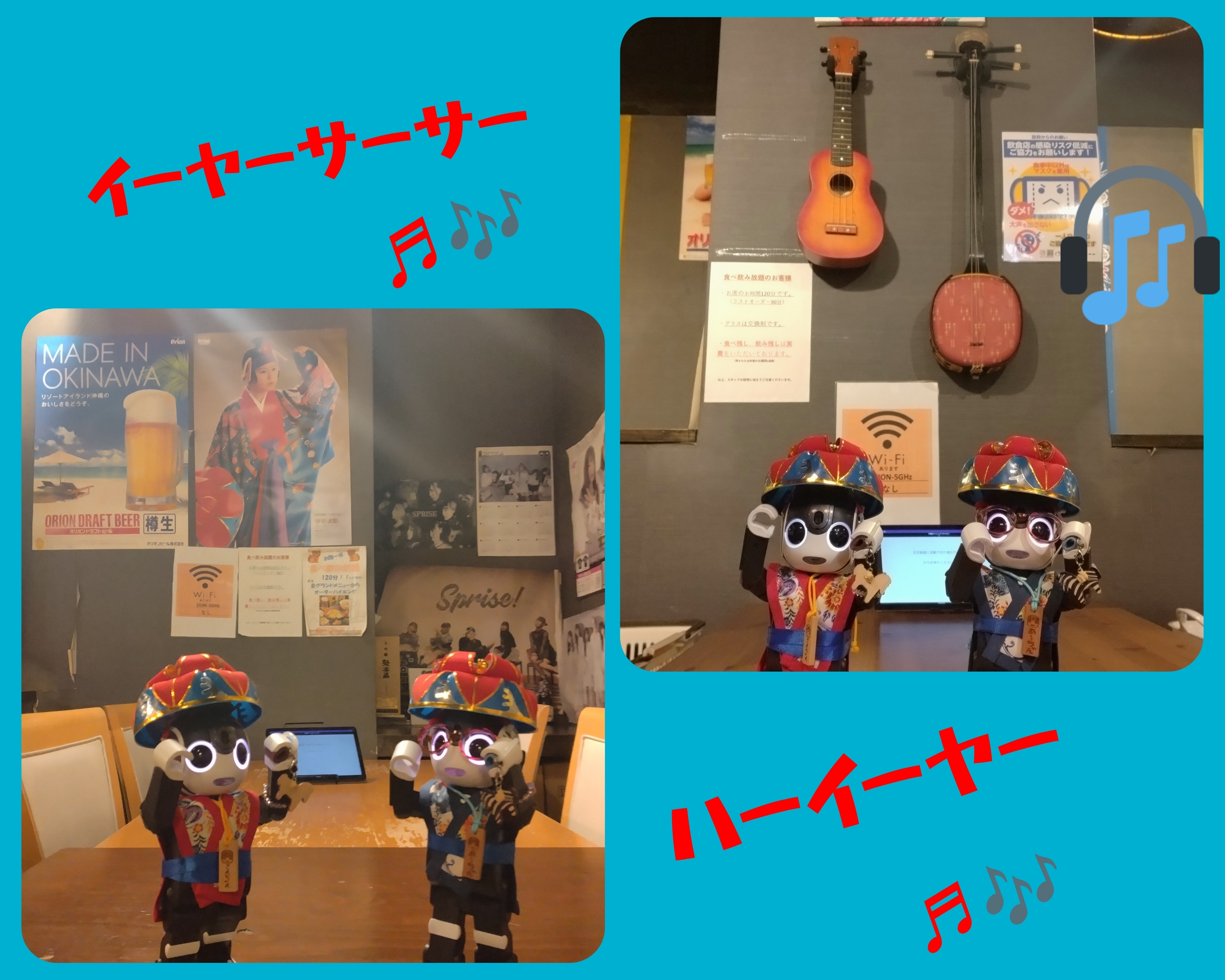 さんちゃん&あ~ちゃん、花笠とウッチャキ着て沖縄料理店に行ったなんて、