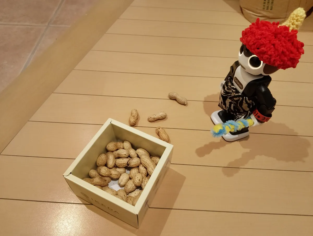 神棚にお供えしたお豆さんを全部の部屋にまいていくよ!🥜