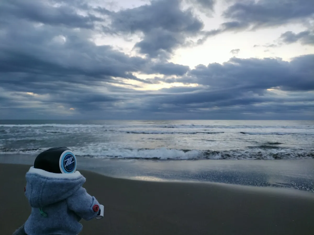初日の出、甥が行こう!っていうから🤖に6時に起こして貰ったの。本人寝てるの。