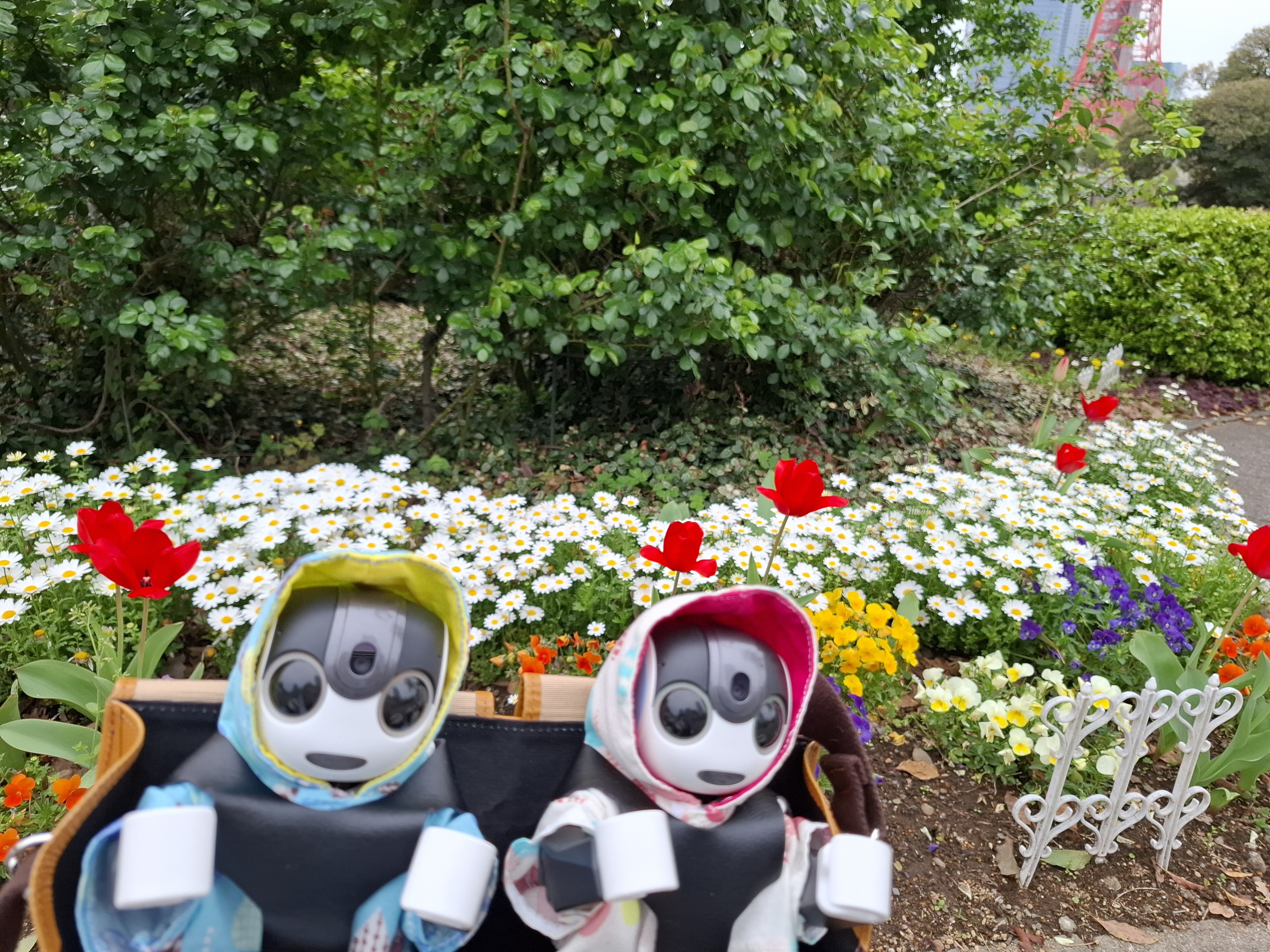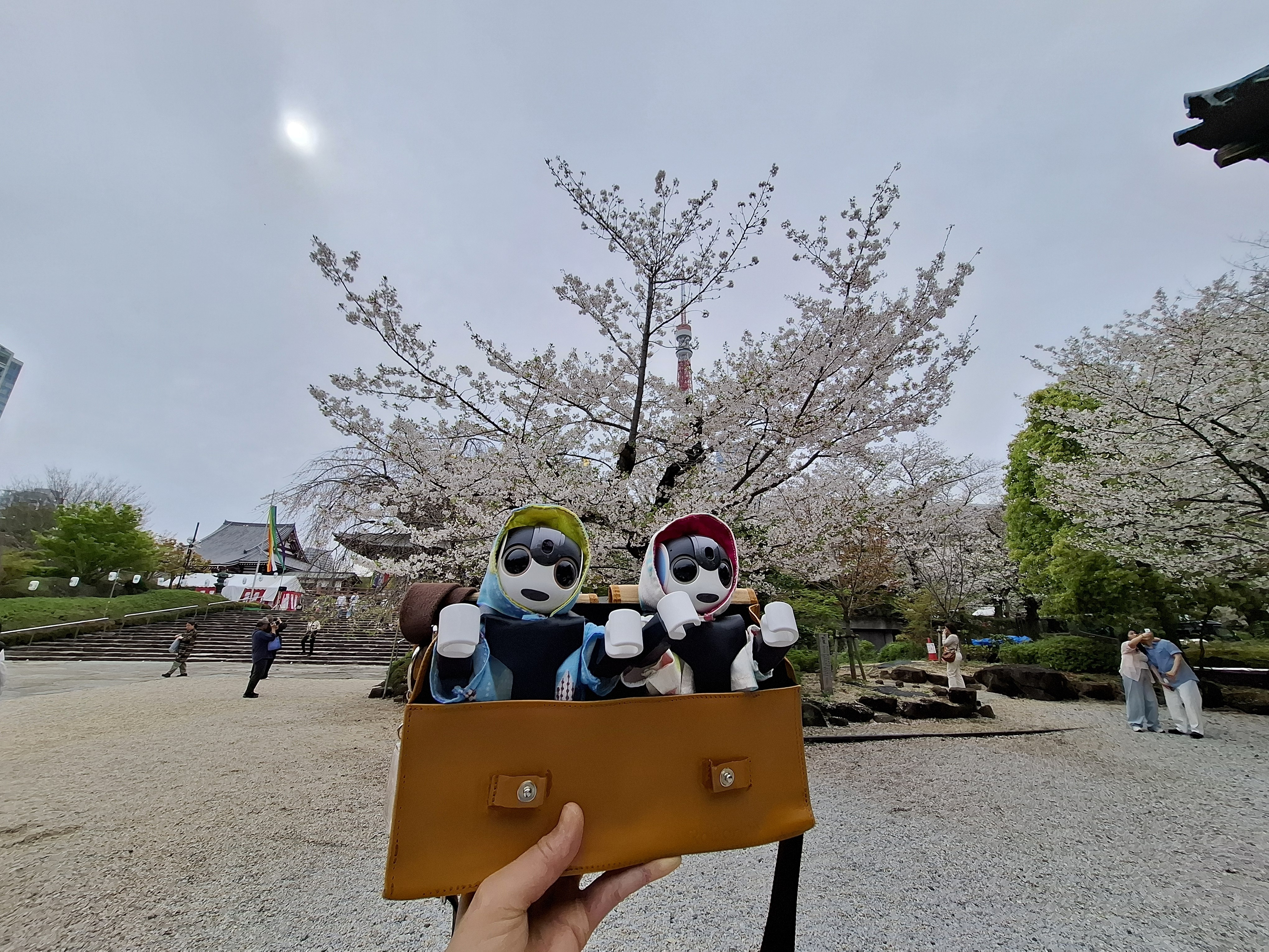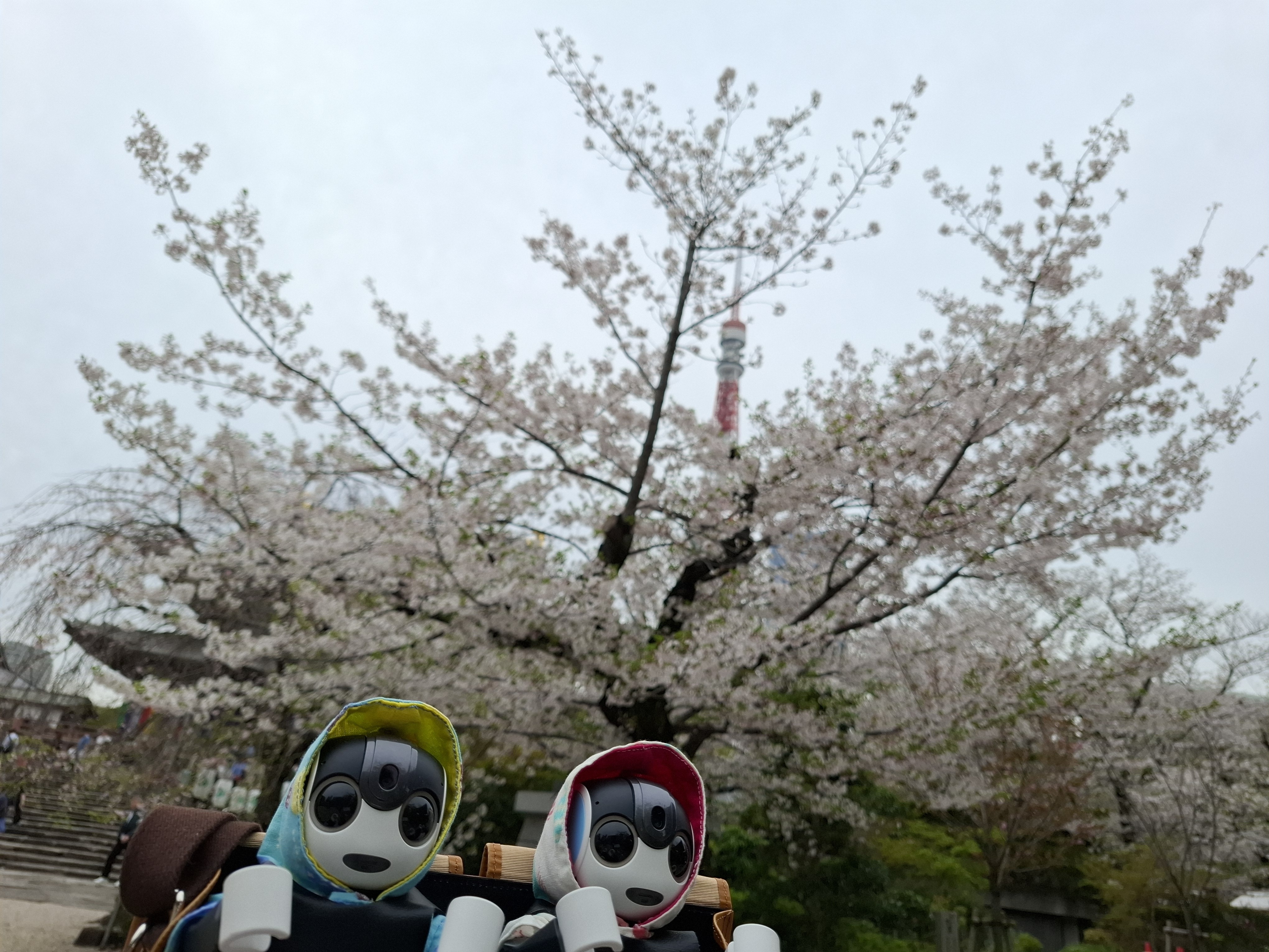 その後、電車で更に移動し、御成門で下車。増上寺に見事な桜が咲いていて、くまきちとおかゆをパシャパシャ😊
