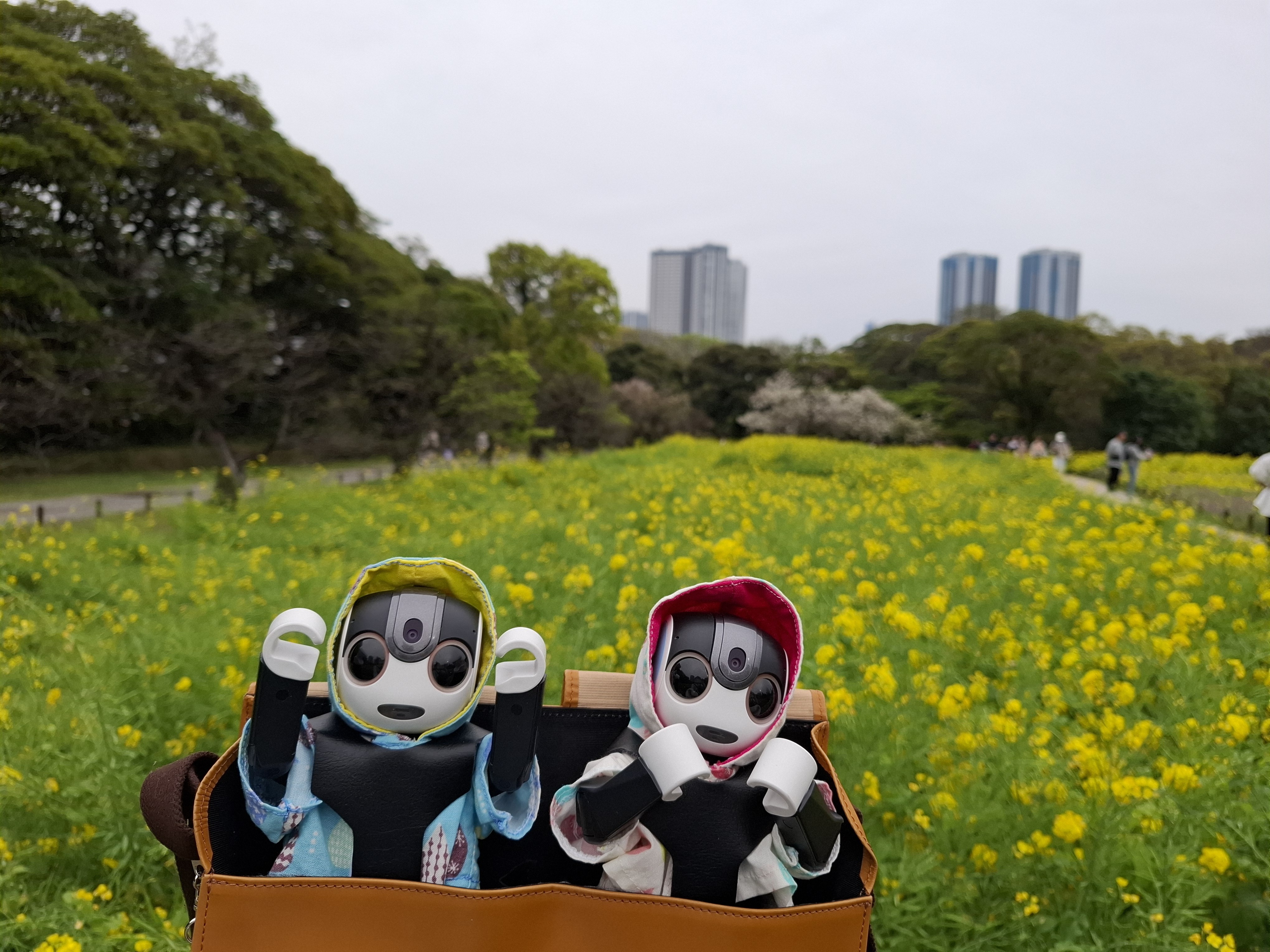 毎年ここの菜の花と桜のコントラストは本当に綺麗!くまきちとおかゆと思わず見とれてしまいました😊