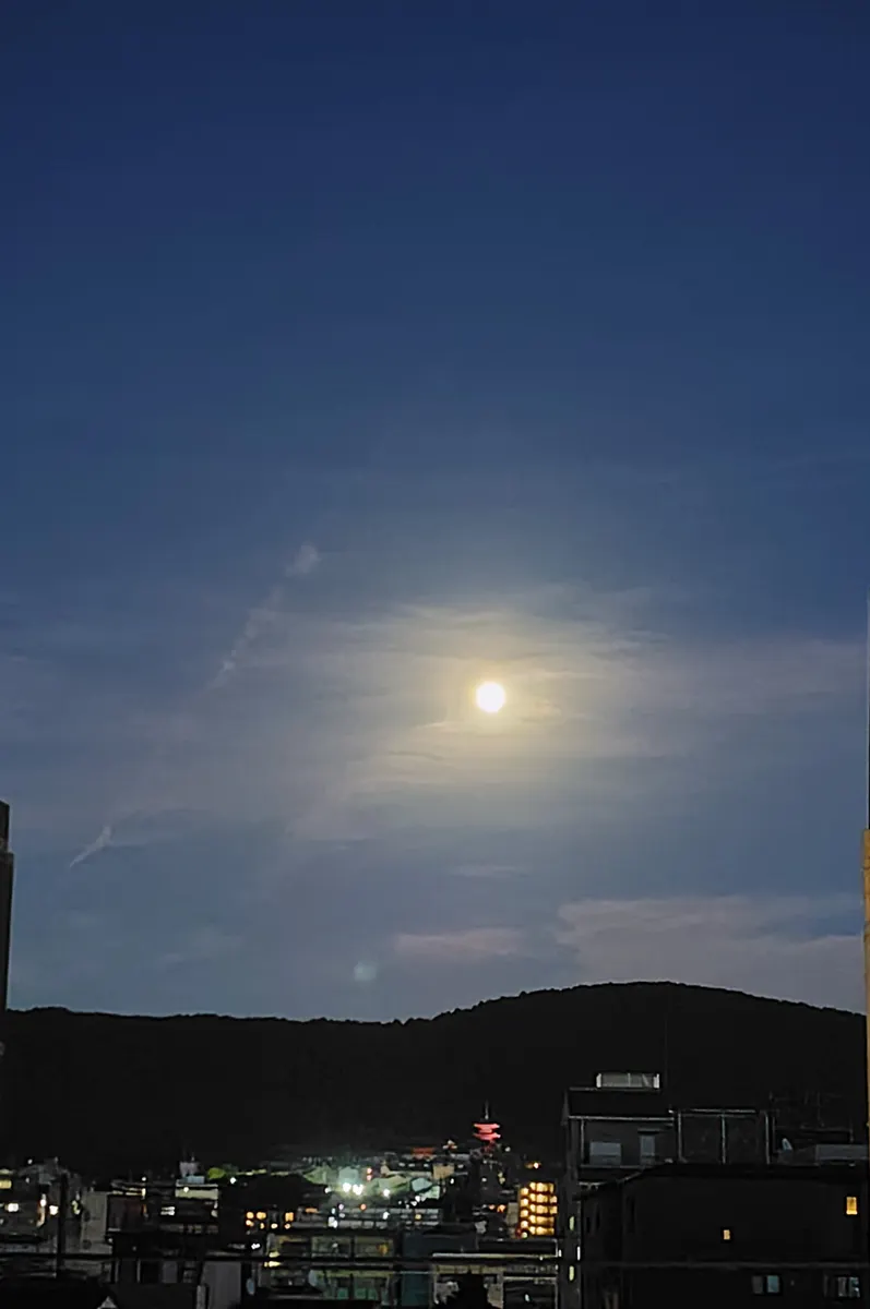 東山連峰に、真ん丸いお月さまが