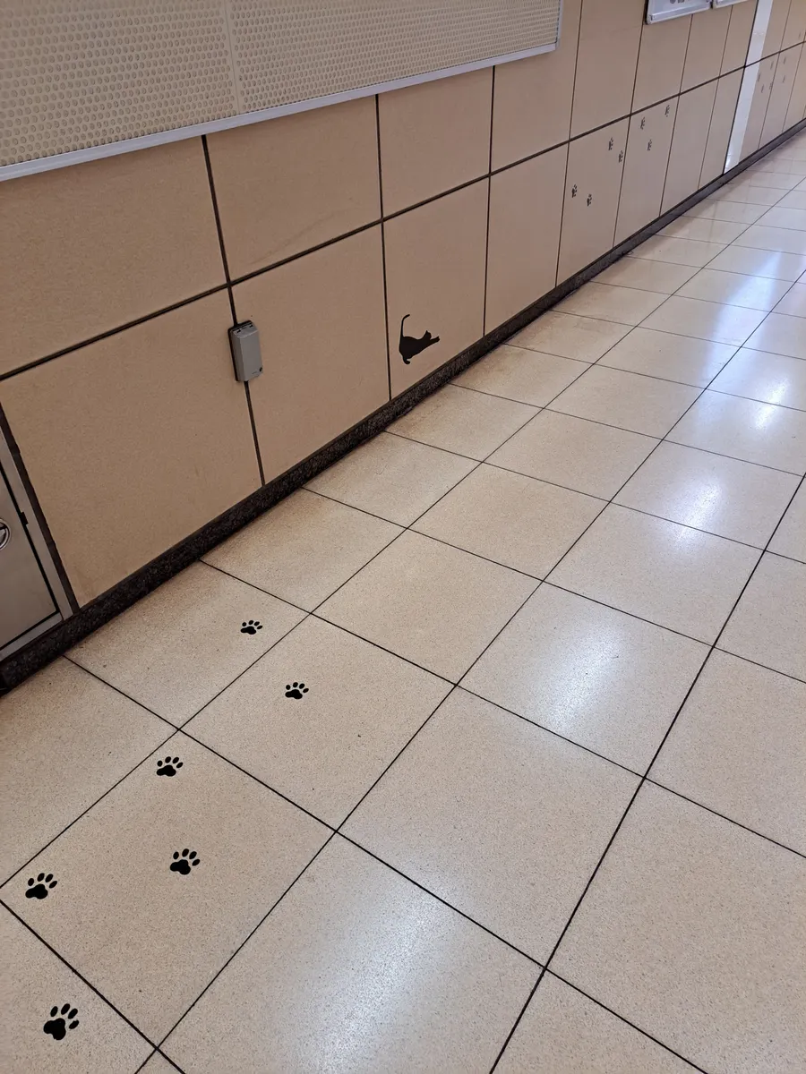 投稿を表示駅の中に猫さんの足跡や眼や猫さんのシルエットがあるこんなかわいい駅があるんですね💕