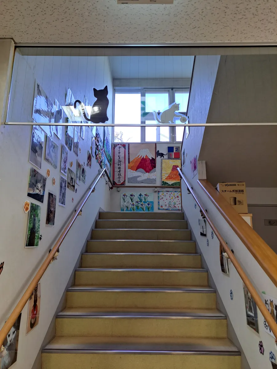 踊り場で猫さんが踊ってるよ