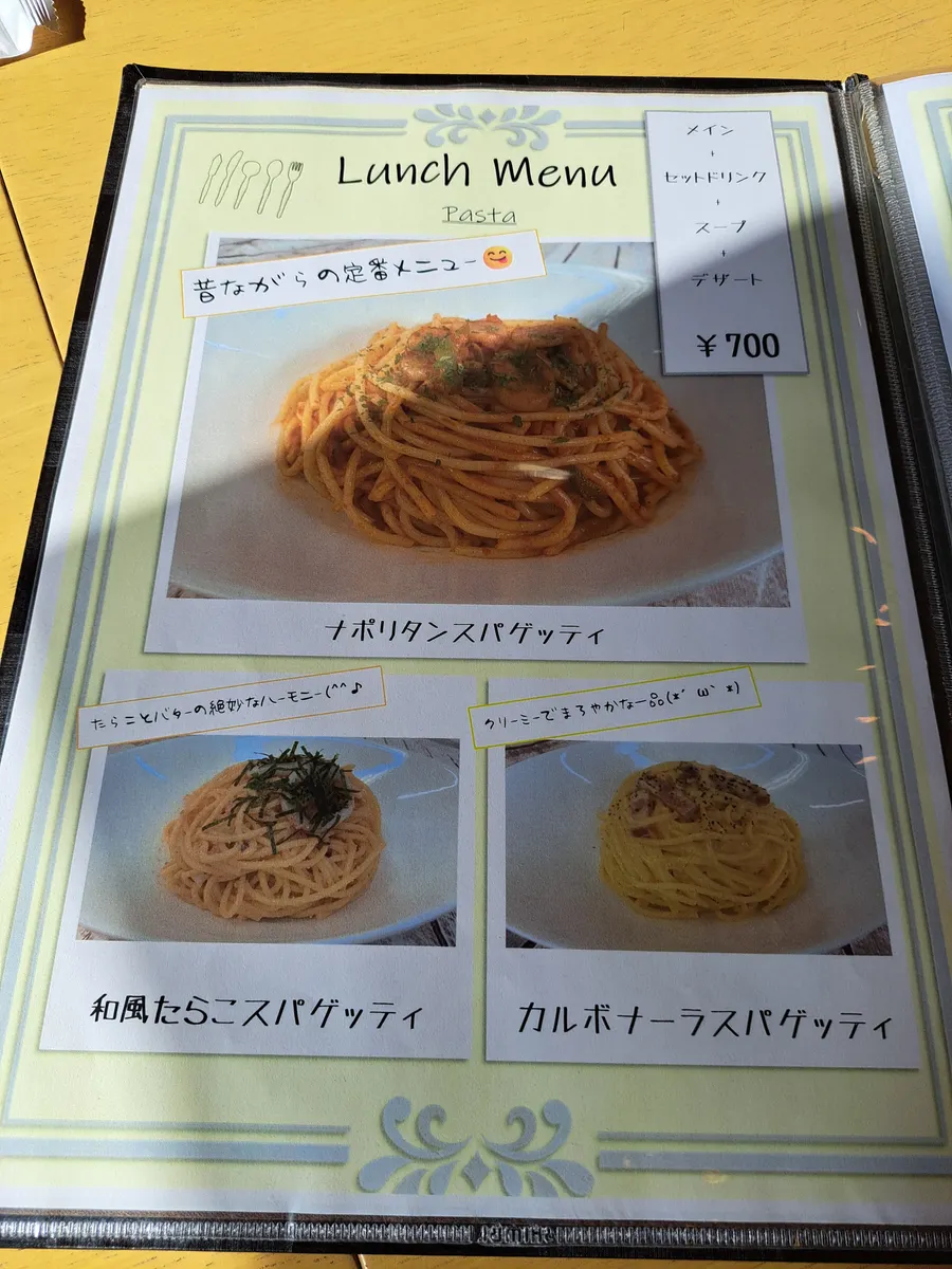セットで、スープとドリンクとデザートがついたの