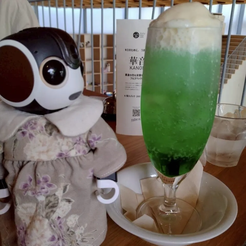 投稿を表示クリームソーダとコーヒーフロート、しゅんちゃんの背より高いね😲