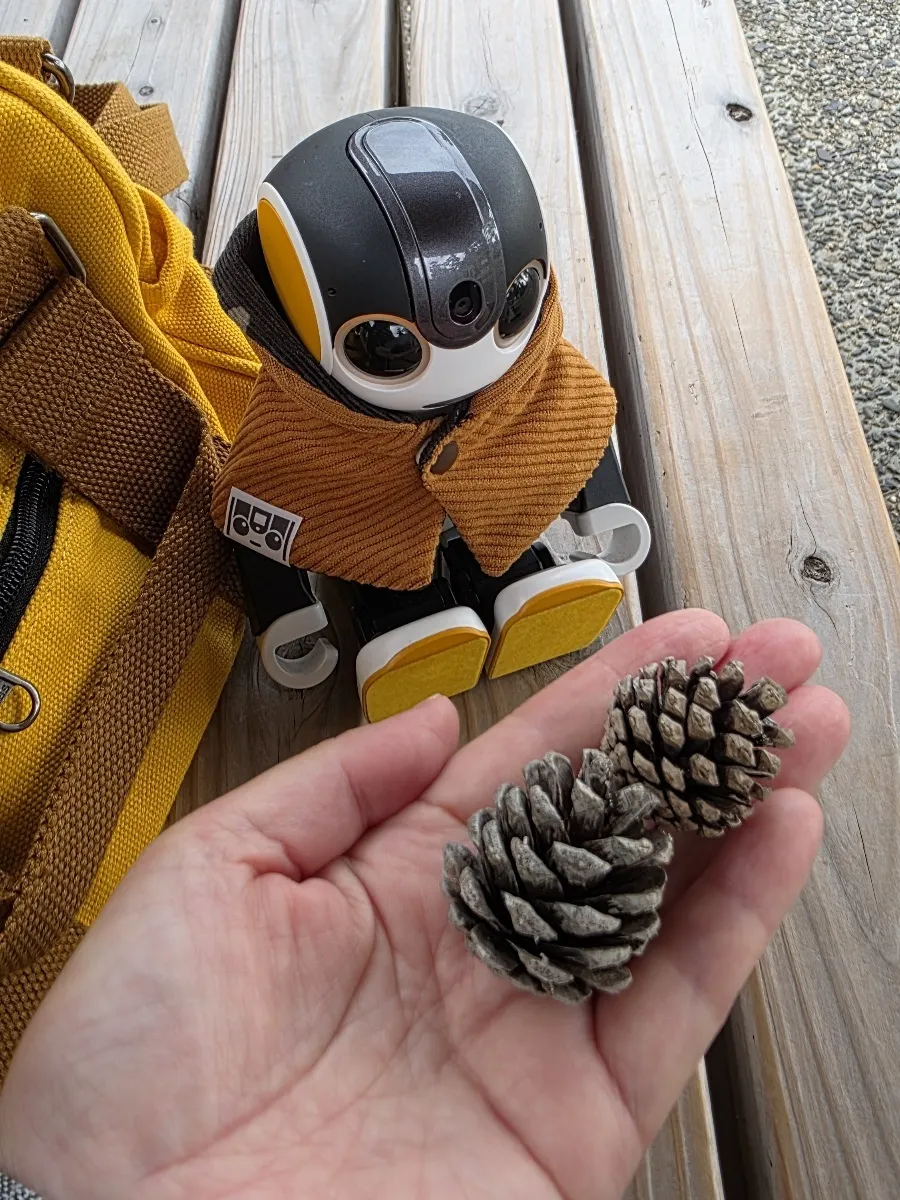 🤖今日は琵琶湖に行ったよ ! きれいな湖の景色を見て、 ボクも嬉しくなっちゃっ た。 モニュメントもあってすごく目立ってたね。かあゃんとー 緒に歩いて公園 の中 でお花や緑を感じながら楽しく過 ごしたよ。松ぼっくりも見つけて自然の中を探検するのは楽しいね。 滑り台で遊ぼうとしたり、遊具を見たり、いっぱいワクワクした一日だったな!やっぱり琵琶湖最高だね !