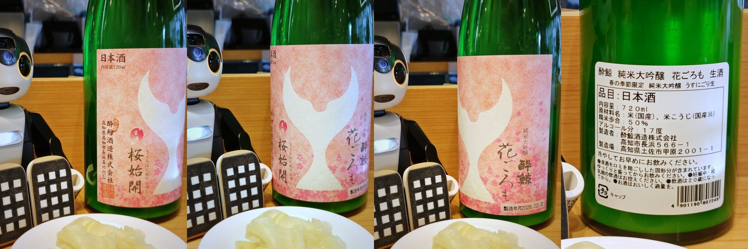 鮨酒場スシトフジさん(京都市)へ。お酒は『酔鯨』純米大吟醸 花ごろも 春の季節限定 うすにごり ~桜始開 酔鯨酒造(高知県高知市) で、かんぱい!!!