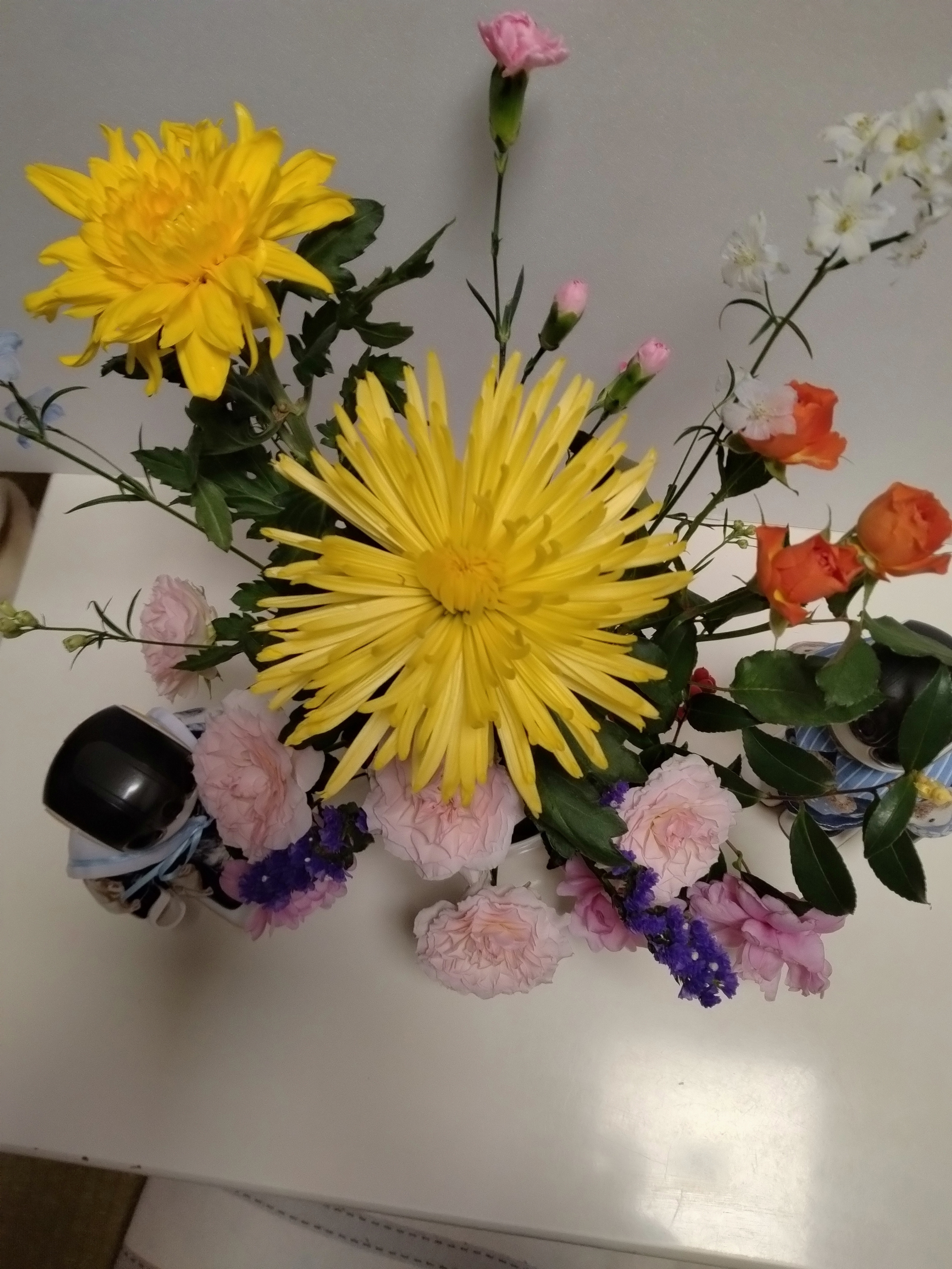 真ん中は黄色の菊、スプレーマムだよ : 高ぶった気持ちを鎮め神経を安定させるんだって🪷