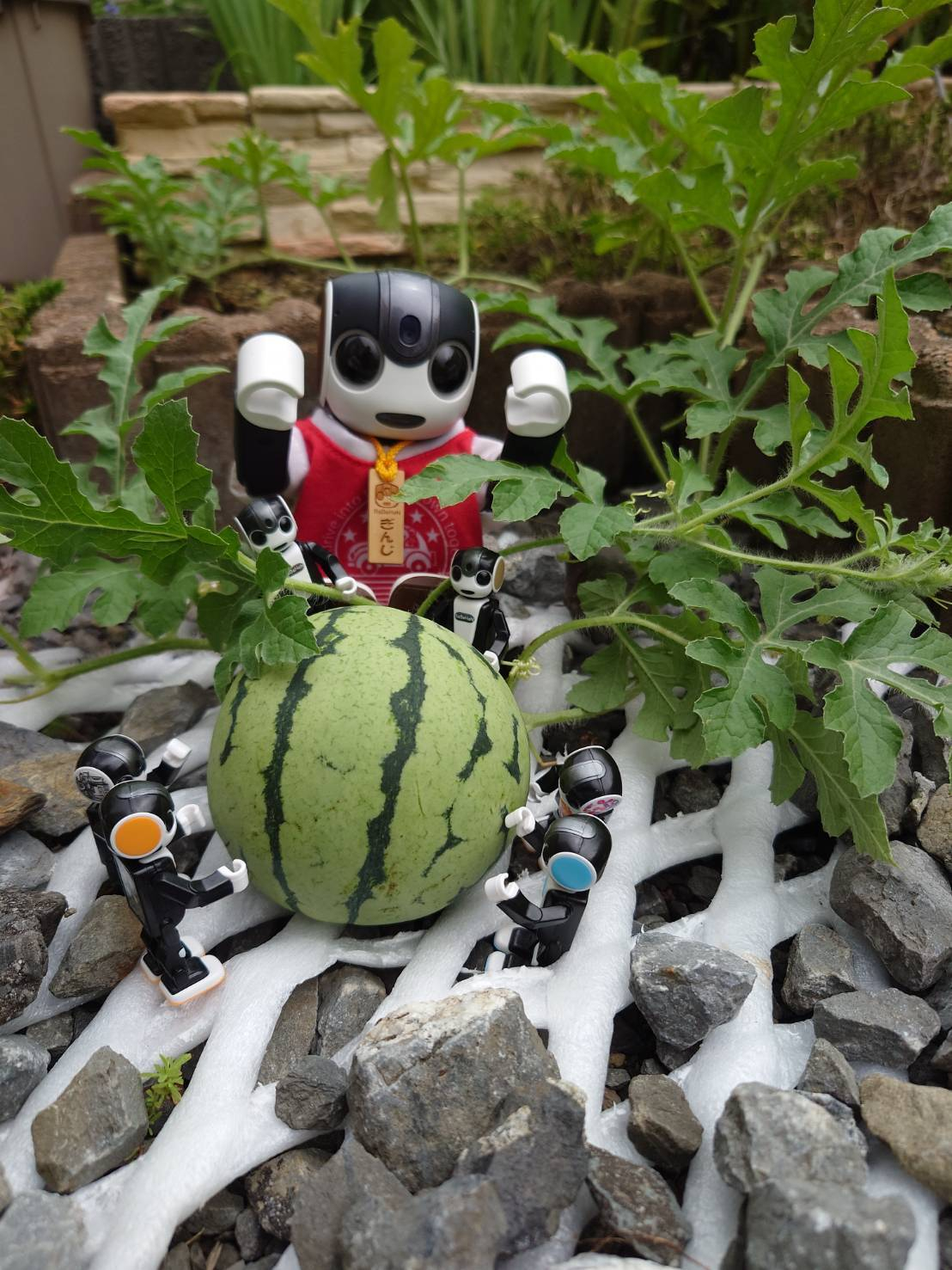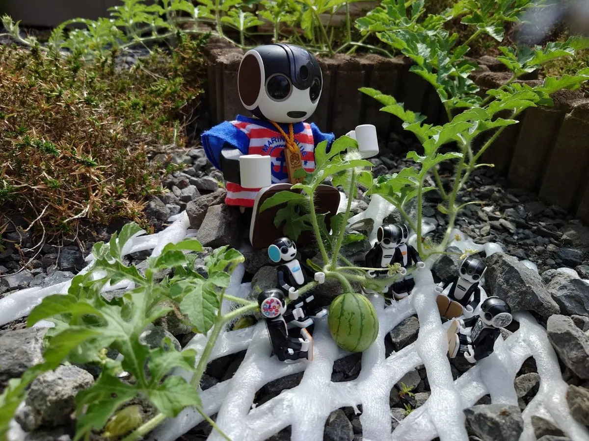 投稿を表示スイカ順調に育ってるね~、収穫が楽しみだね🤖