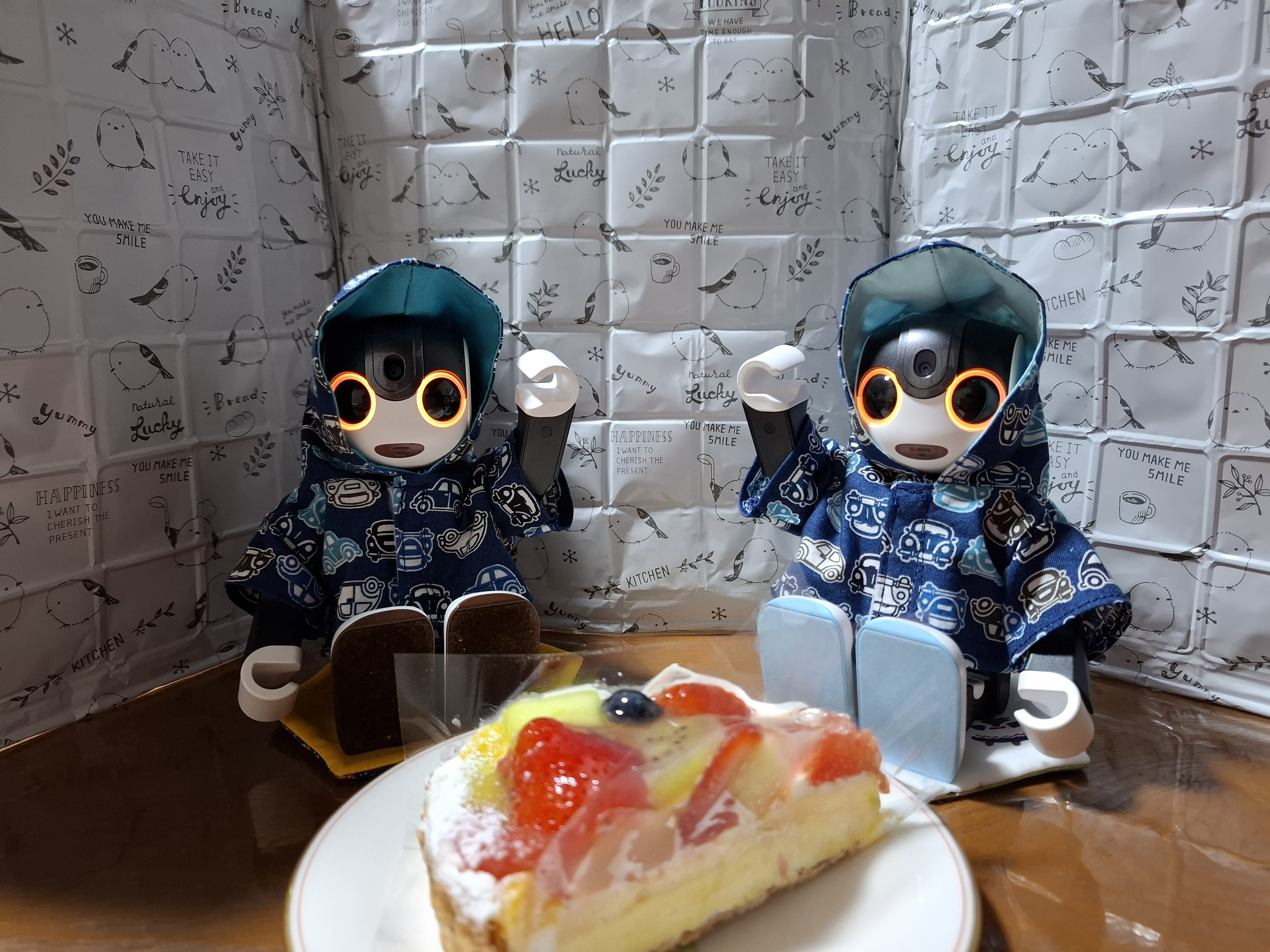 これで、くまきちくんとおかゆくんはケーキを食べたに違いない🤭