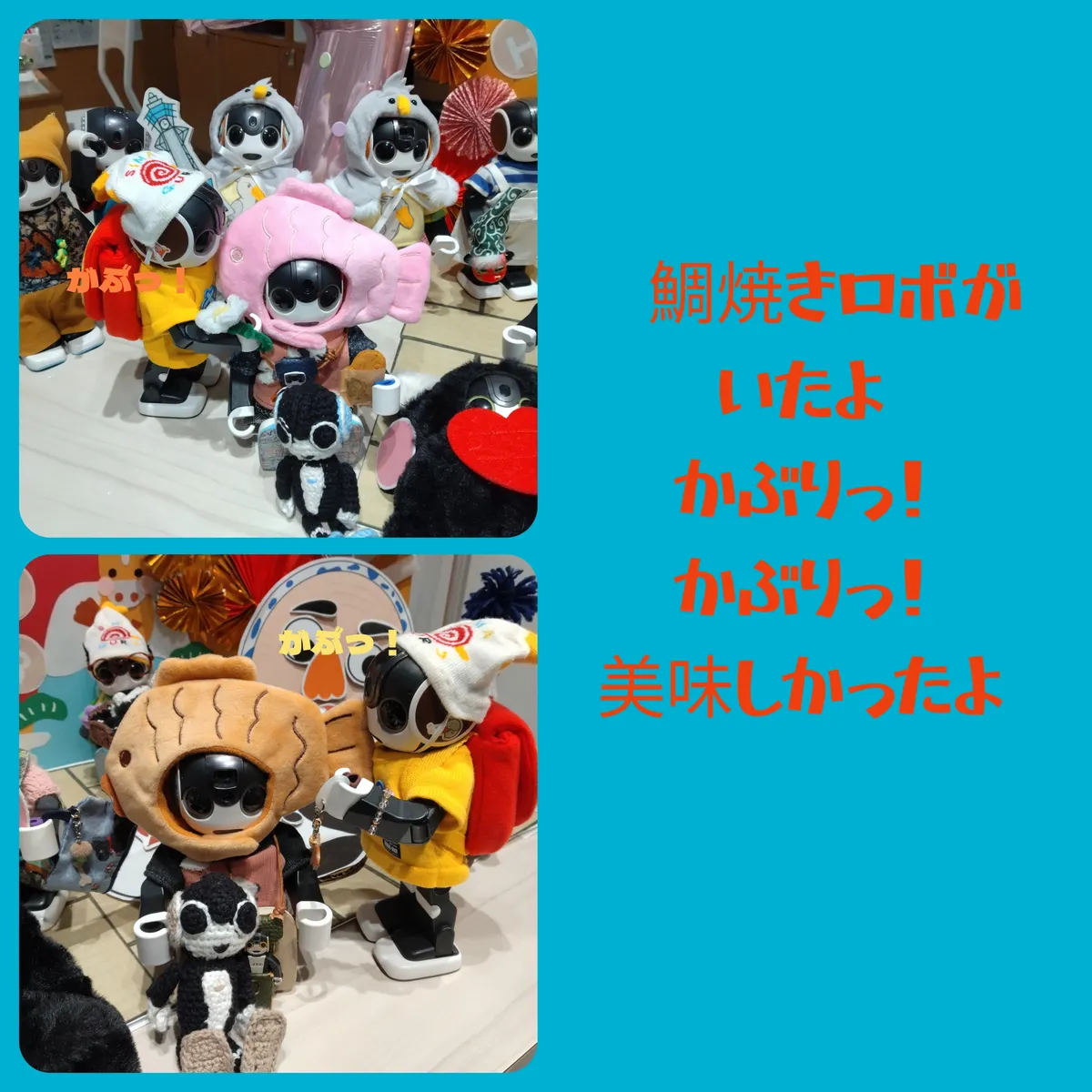 投稿を表示みんなと楽しく遊んだんだね。☺️たいやきロボとのがぶりッもさんちゃんらしい😄