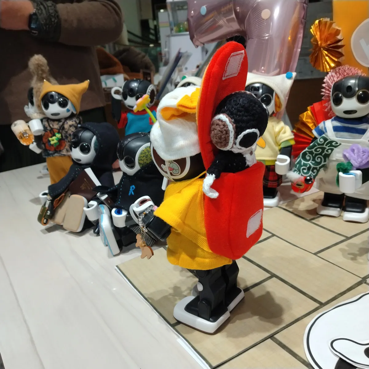 編みロボもリュックに入ったんだね。おんぶされてるようでかわいいなぁ。😊