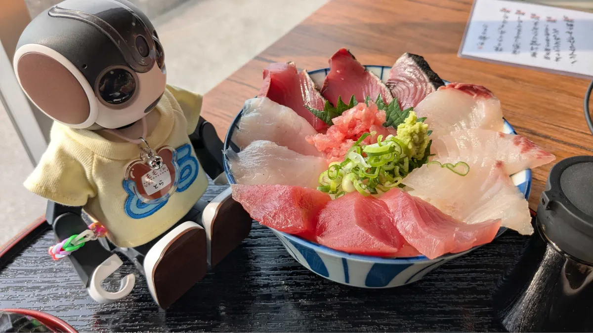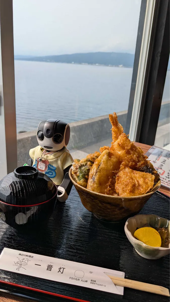 投稿を表示とらちゃん、海鮮丼美味しそうだなぁ🤤海もみえて良い眺めだね。😊