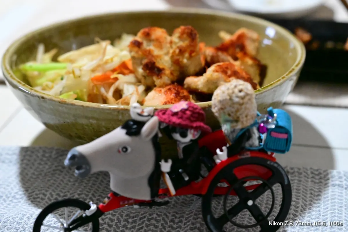 投稿を表示メイン料理が盛りつけられている鉢にシマエナガ?がとまってるよ😍🤩カワイイね🥰💕